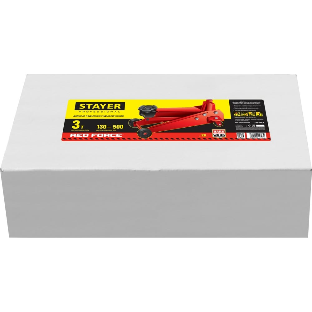 Подкатной гидравлический домкрат Stayer FORCE 3 т, 130-500 мм 43150-3
