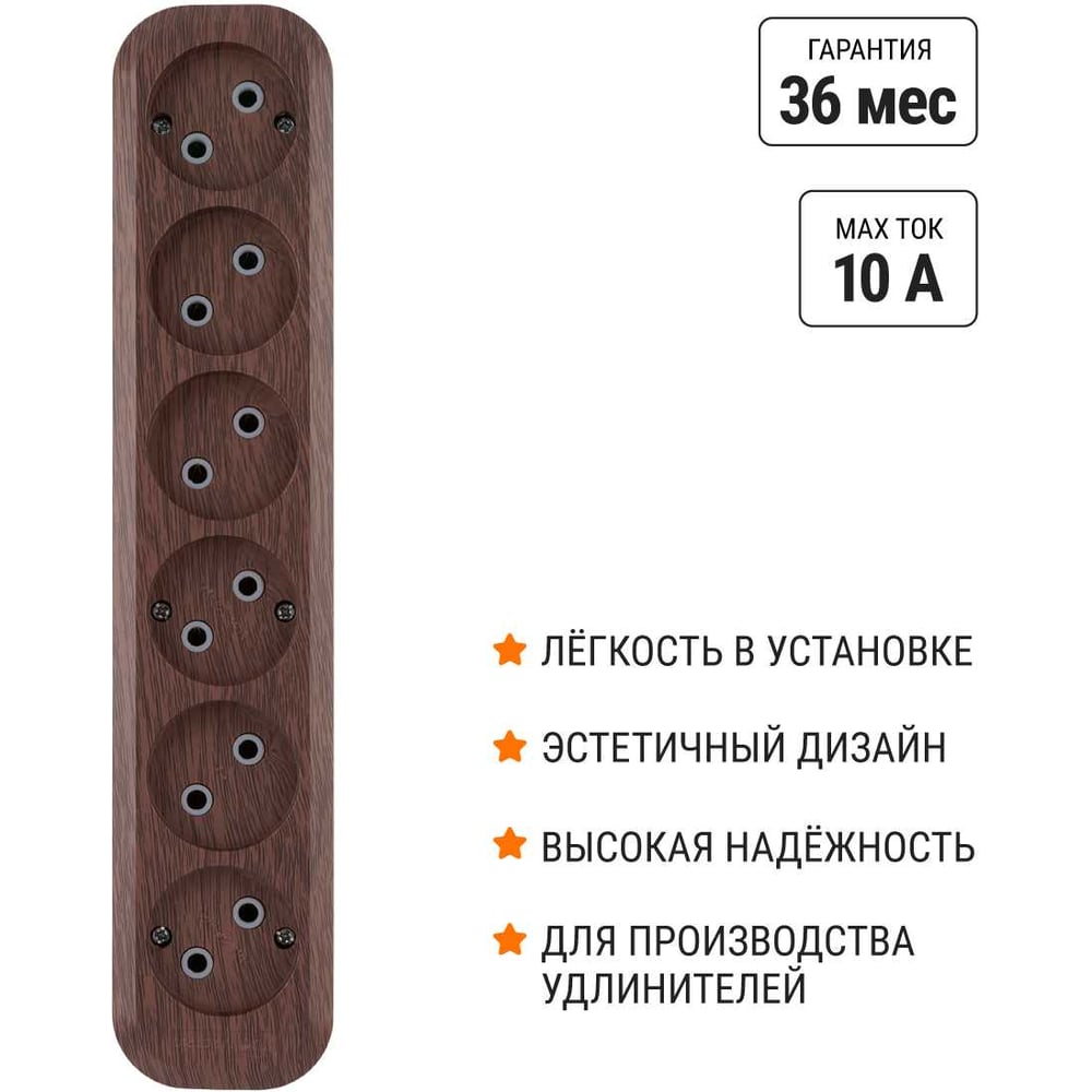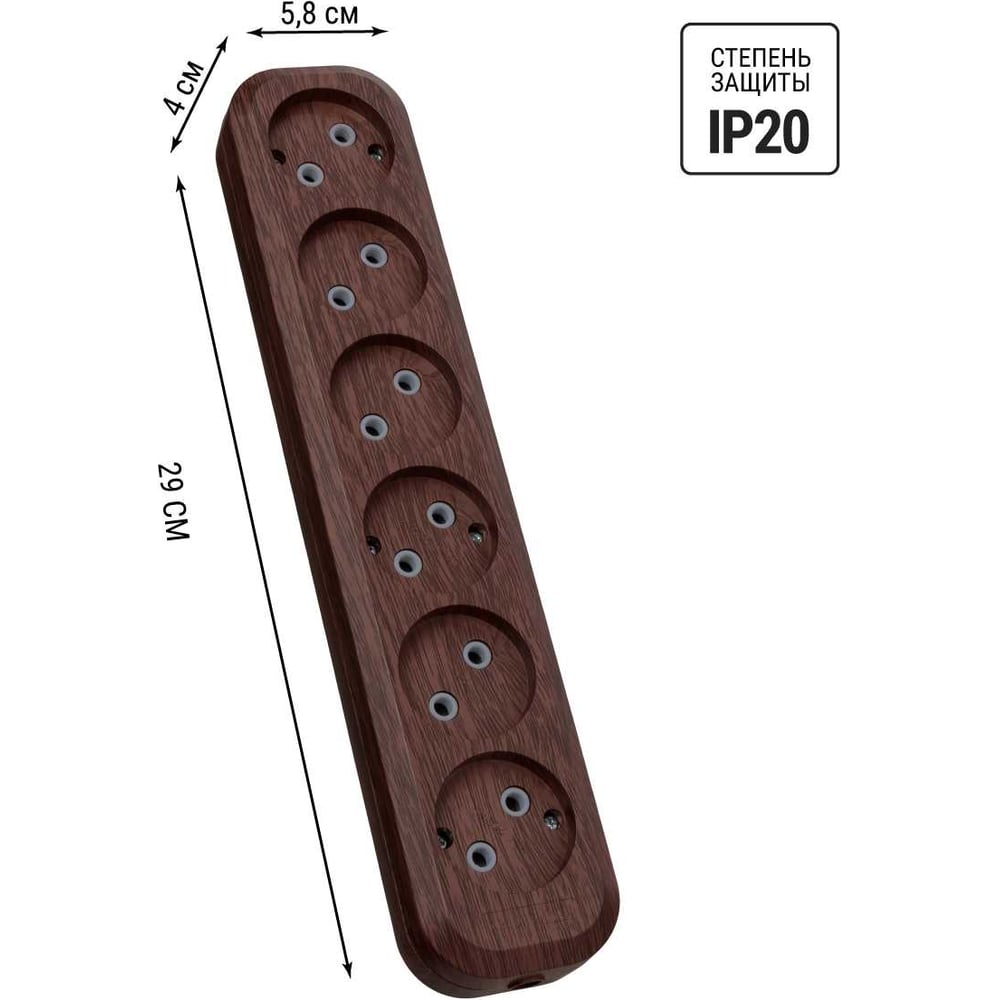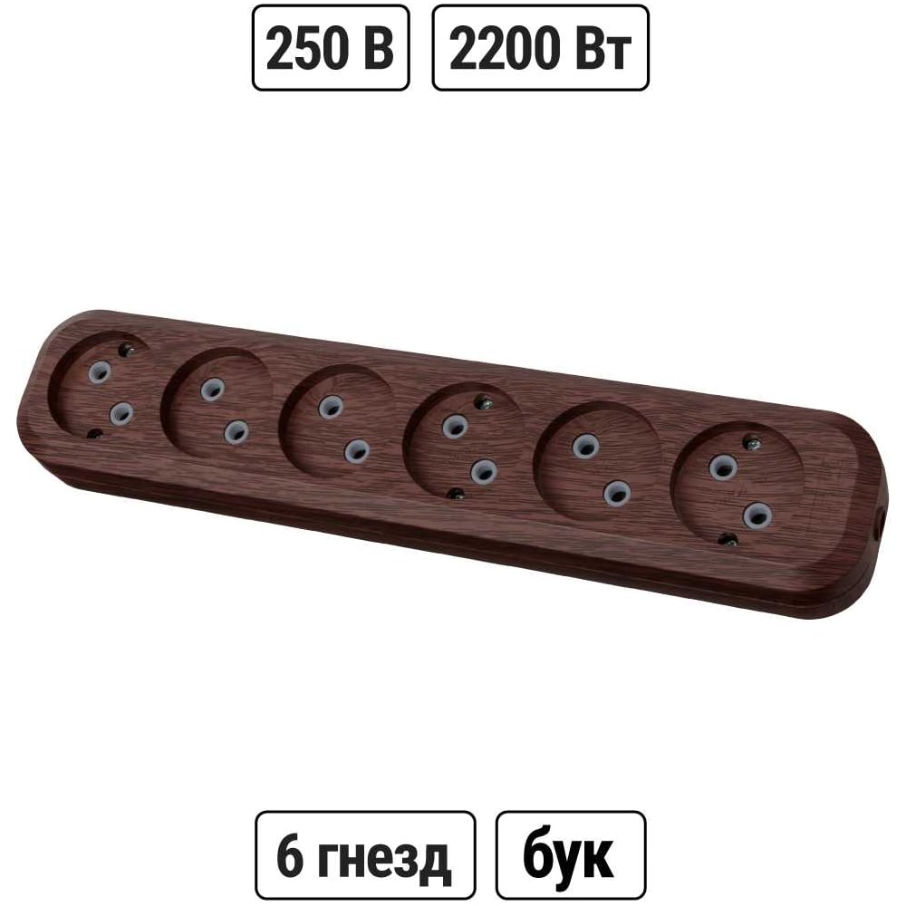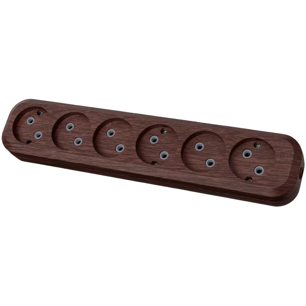 Колодка для удлинителя TDM ELECTRIC на 6 гнезд 2П, без заземления, 10А 250В "Эко" (бук) SQ1806-0070