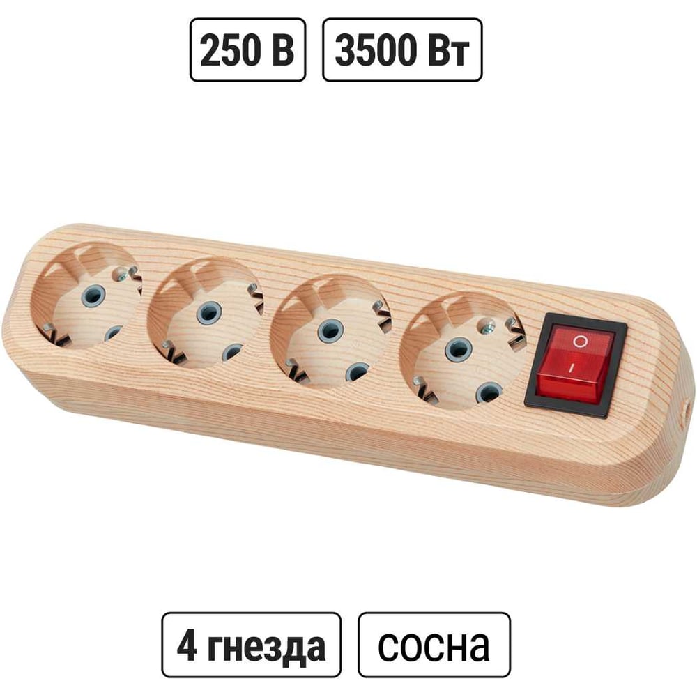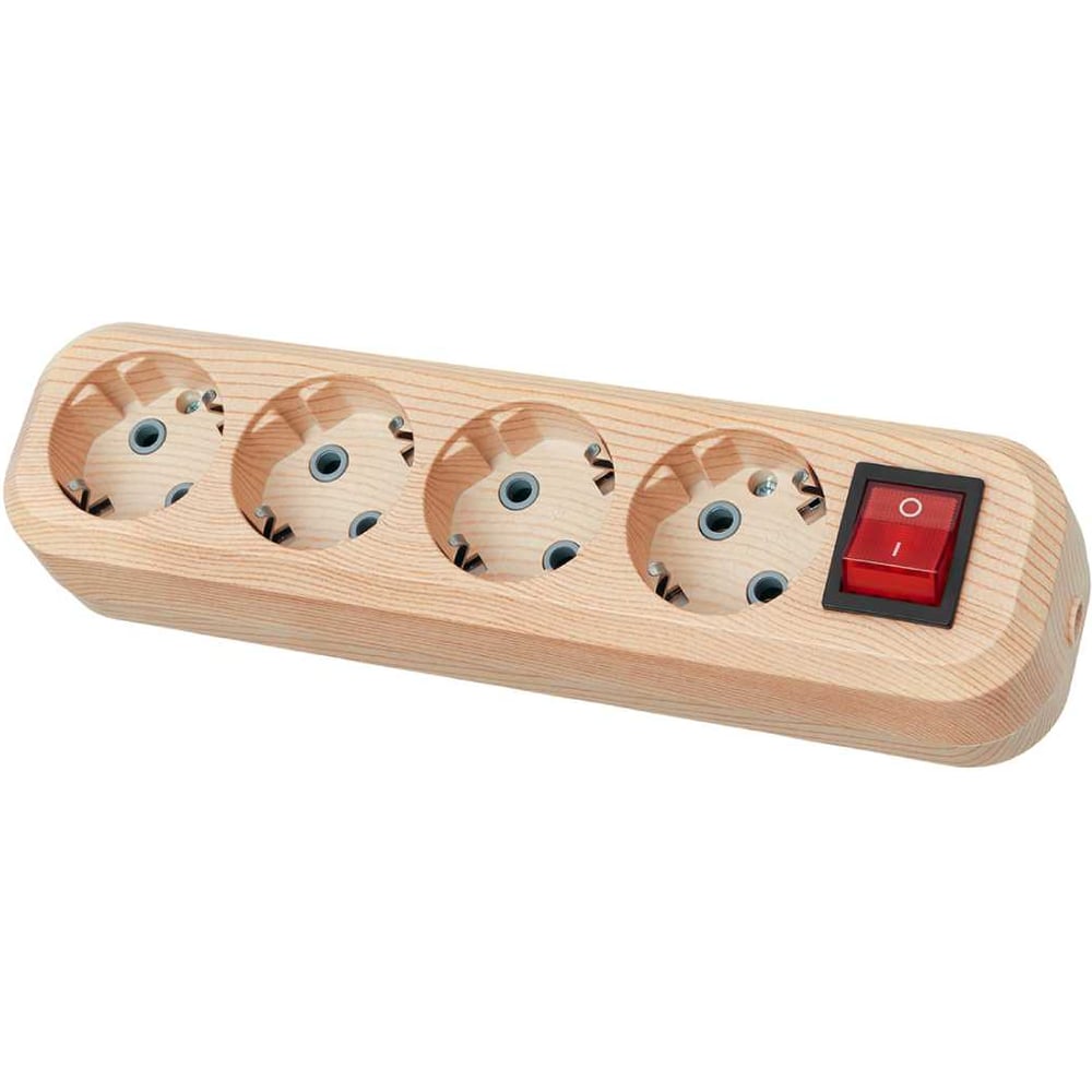Колодка для удлинителя TDM ELECTRIC на 4 гнезда 2П, с заземлением, с выключателем 16А 250В "Эко" (сосна) SQ1806-0052