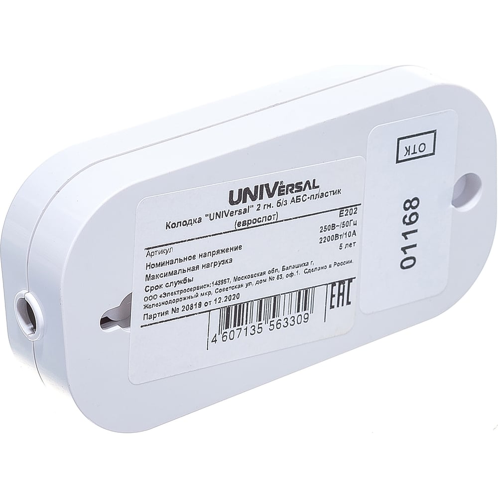 Колодка без заземления, 2 гнезда, AБС-пластик UNIVersal E202