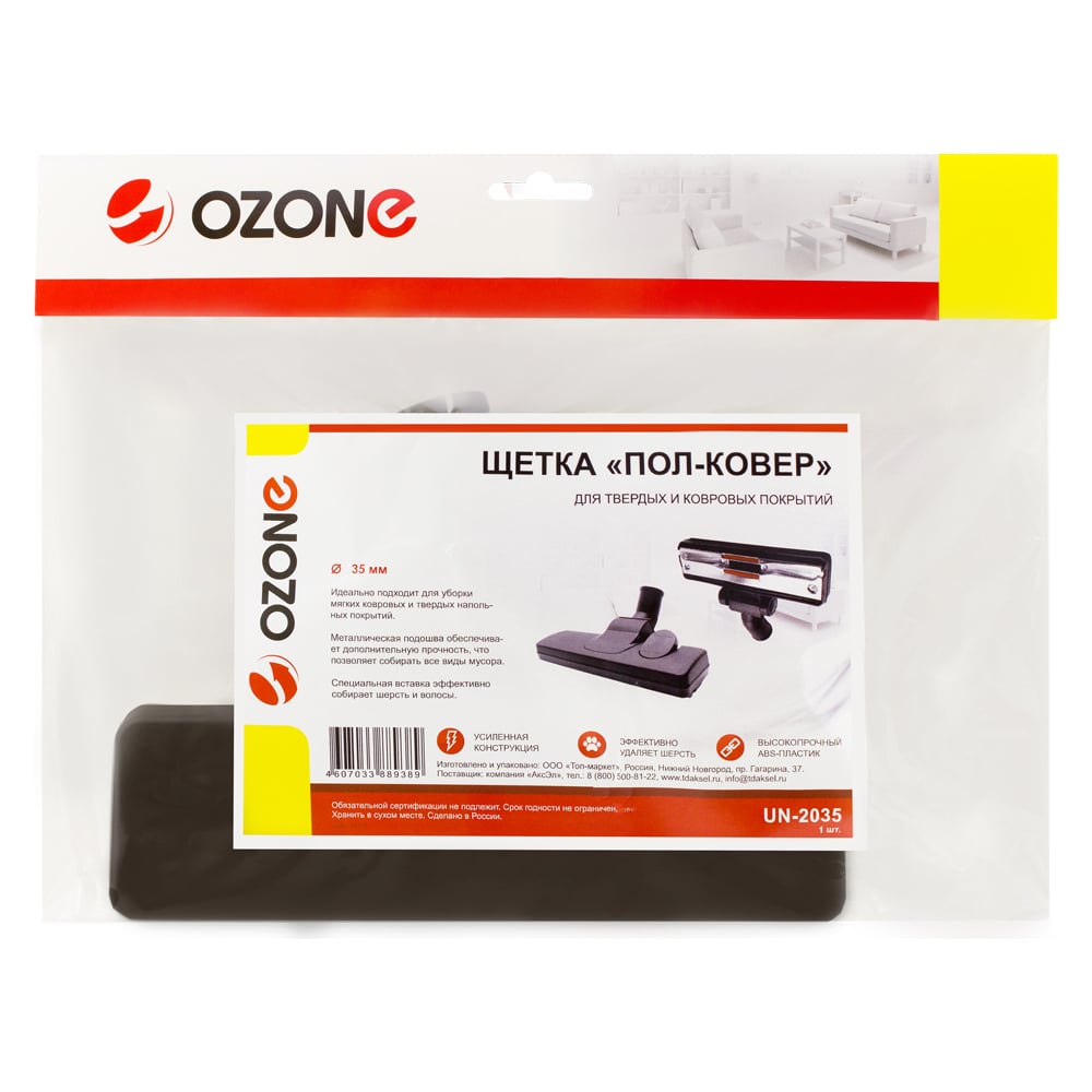 Насадка для бытового пылесоса OZONE гладкие и ковровые покрытия с высоким ворсом UN-2035