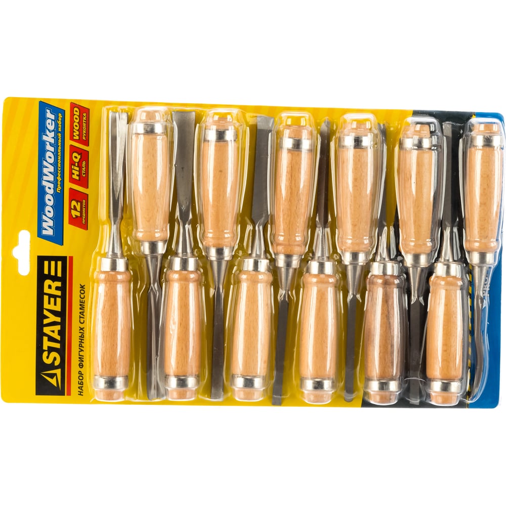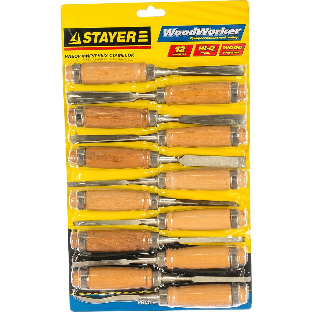 Набор фигурных стамесок STAYER PROFI с деревянной ручкой, 12шт 1835-H12_z01