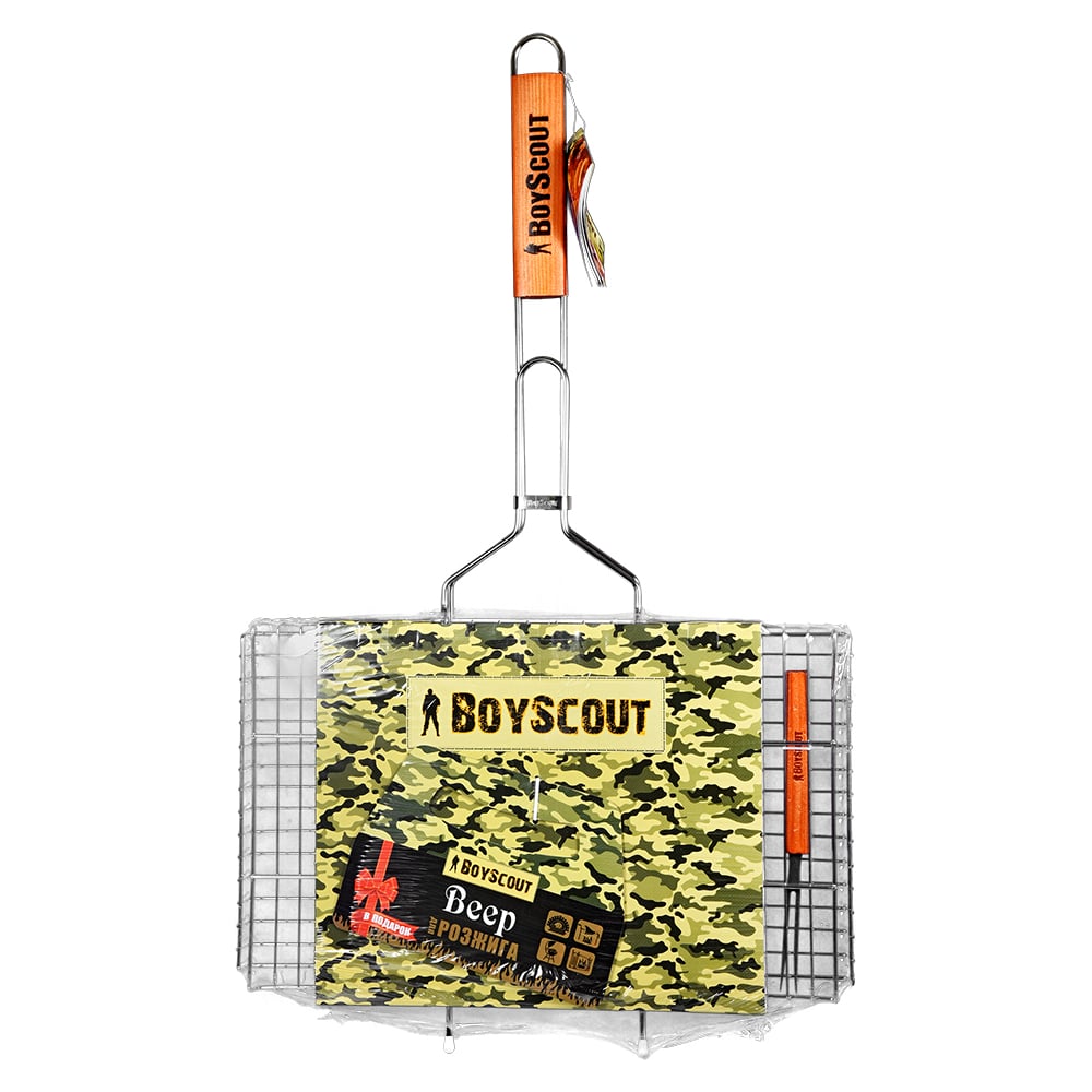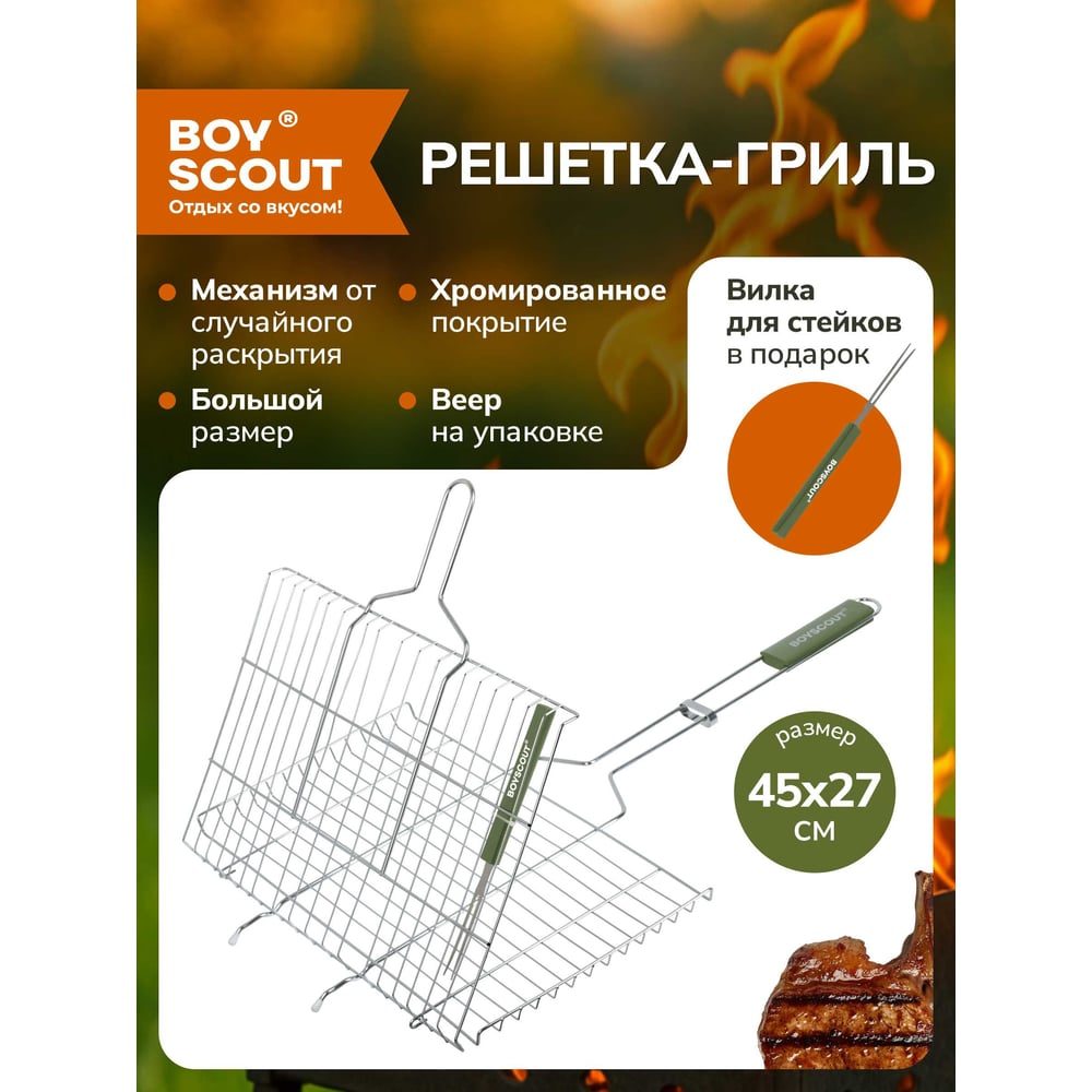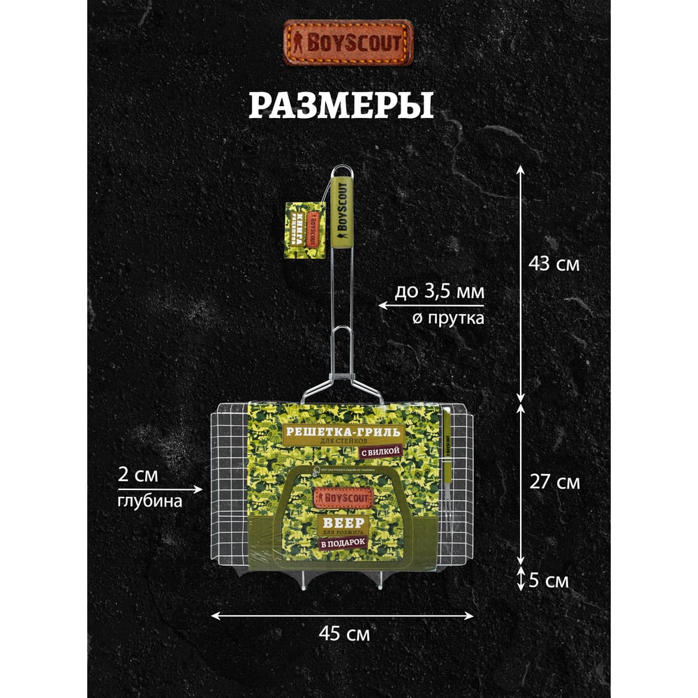 Большая решетка-гриль для стейков с вилкой BOYSCOUT + картонный веер 61301