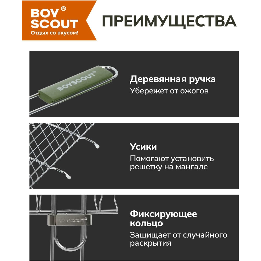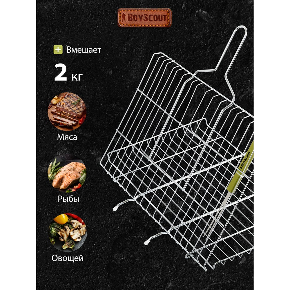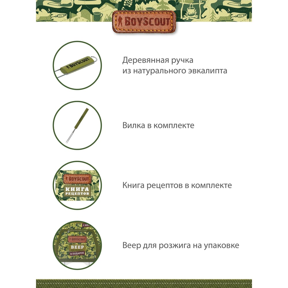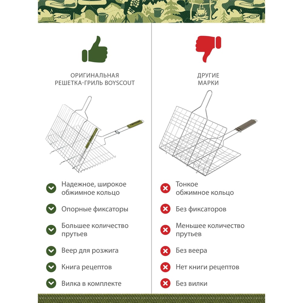Большая решетка-гриль для стейков с вилкой BOYSCOUT + картонный веер 61301