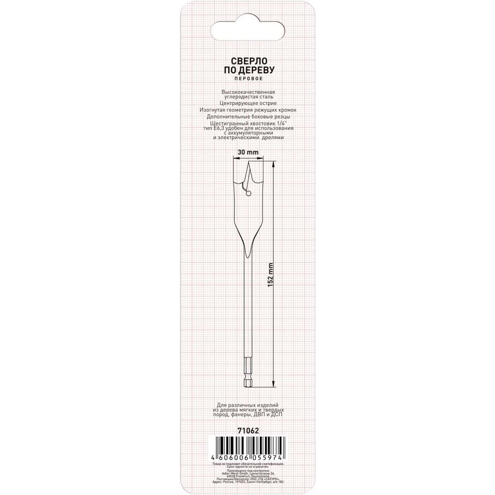 Сверло перовое (30 мм) ТРИГГЕР 71062 тов-173552