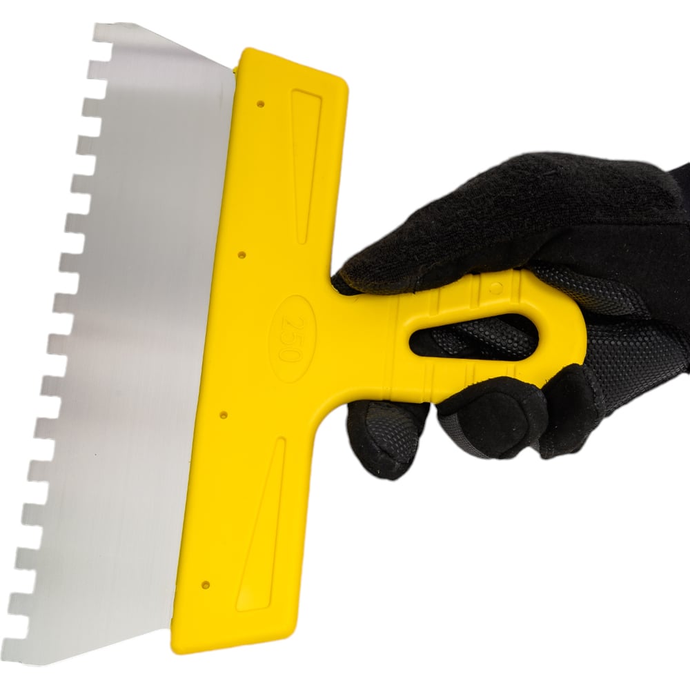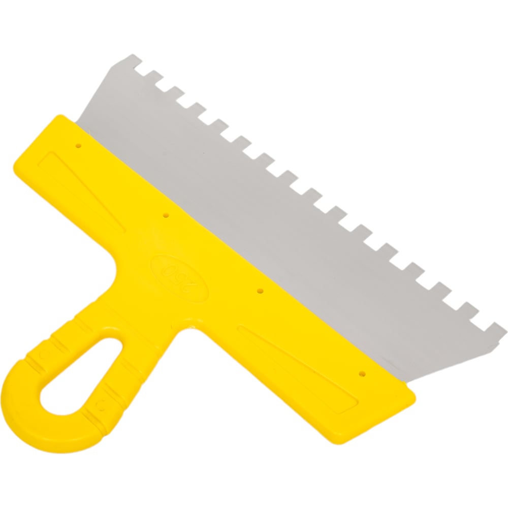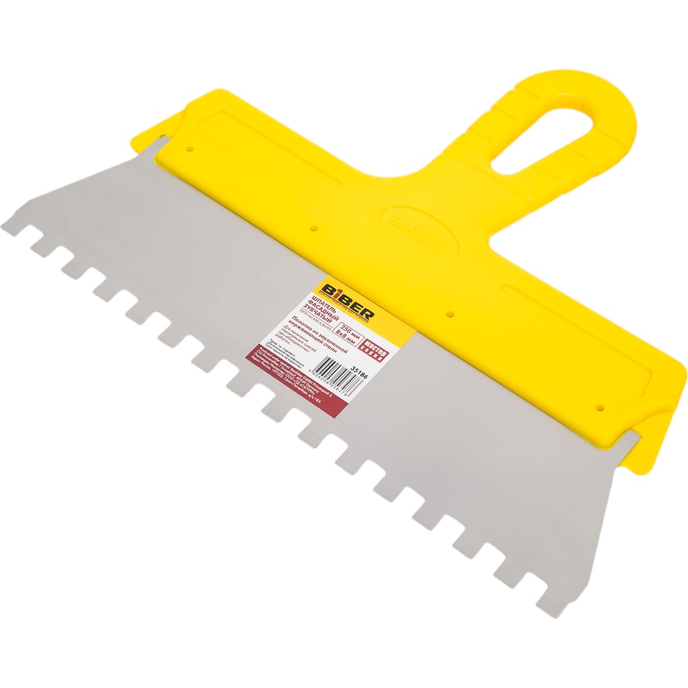 Фасадный зубчатый шпатель (250 мм, нержавеющая сталь, 8 мм, желтая ручка) Biber МАСТЕР 35186 тов-176013