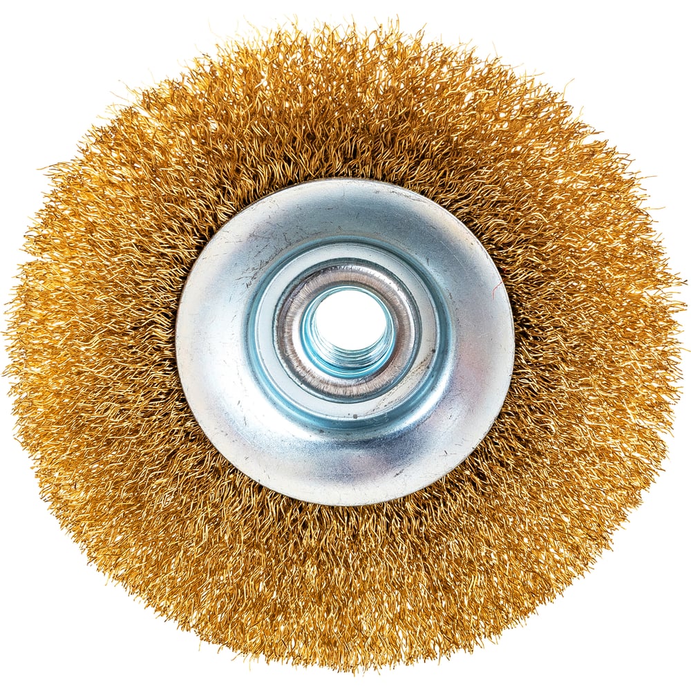 Щетка тарельчатая (115 мм; М14; латунированная волнистая 0.35 мм) для УШМ Elitech 1820.075200