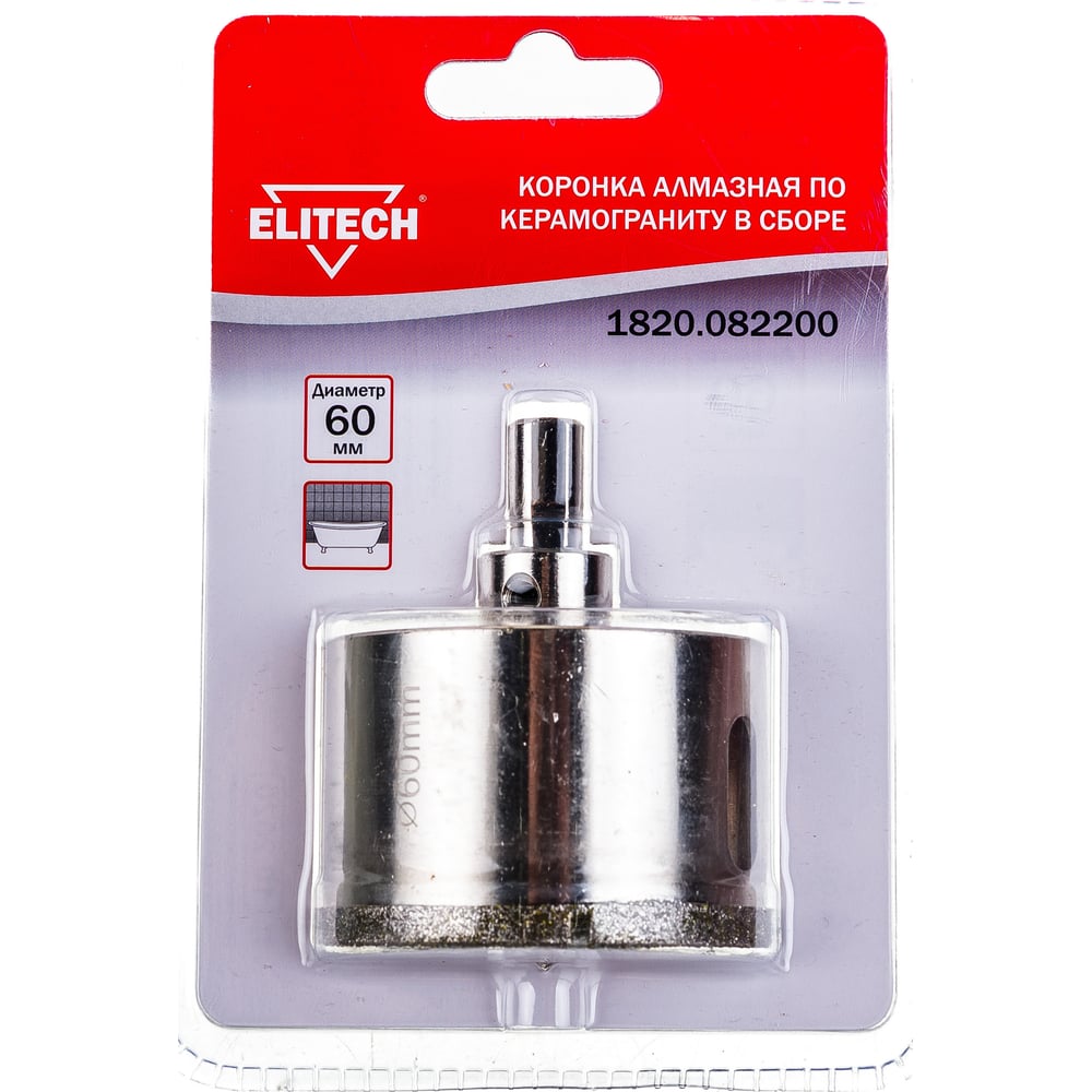 Коронка алмазная в сборе по керамограниту 60 мм Elitech 1820.082200
