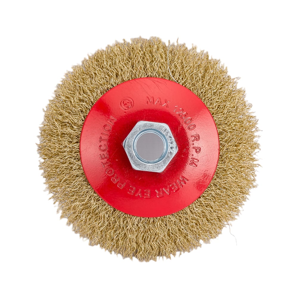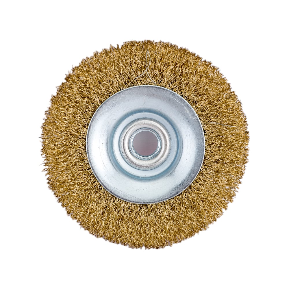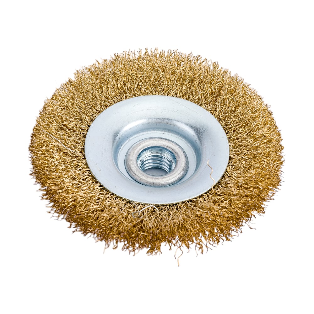 Щетка тарельчатая (100 мм; М14; латунированная волнистая 0.35 мм) для УШМ Elitech 1820.075100
