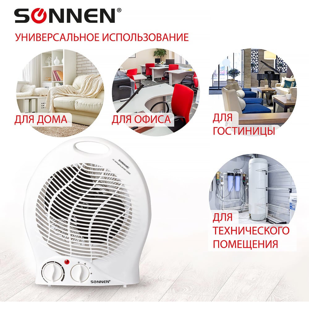 Тепловентилятор SONNEN F-200, 1000/2000 Вт, 2 режима работы, белый, 453493