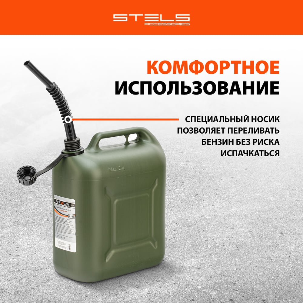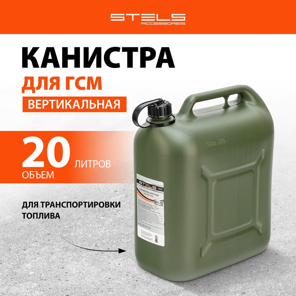 Канистра для ГСМ вертикальная, 20 л пластиковая, усиленная STELS 53127