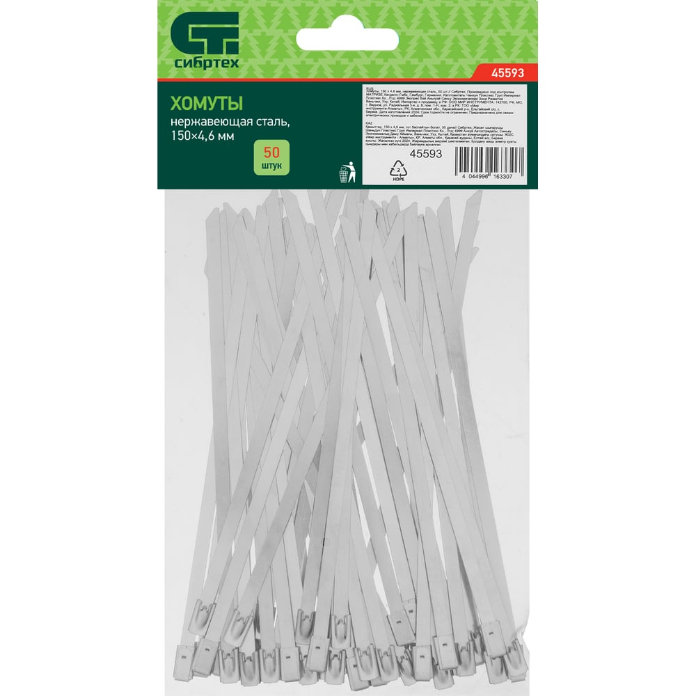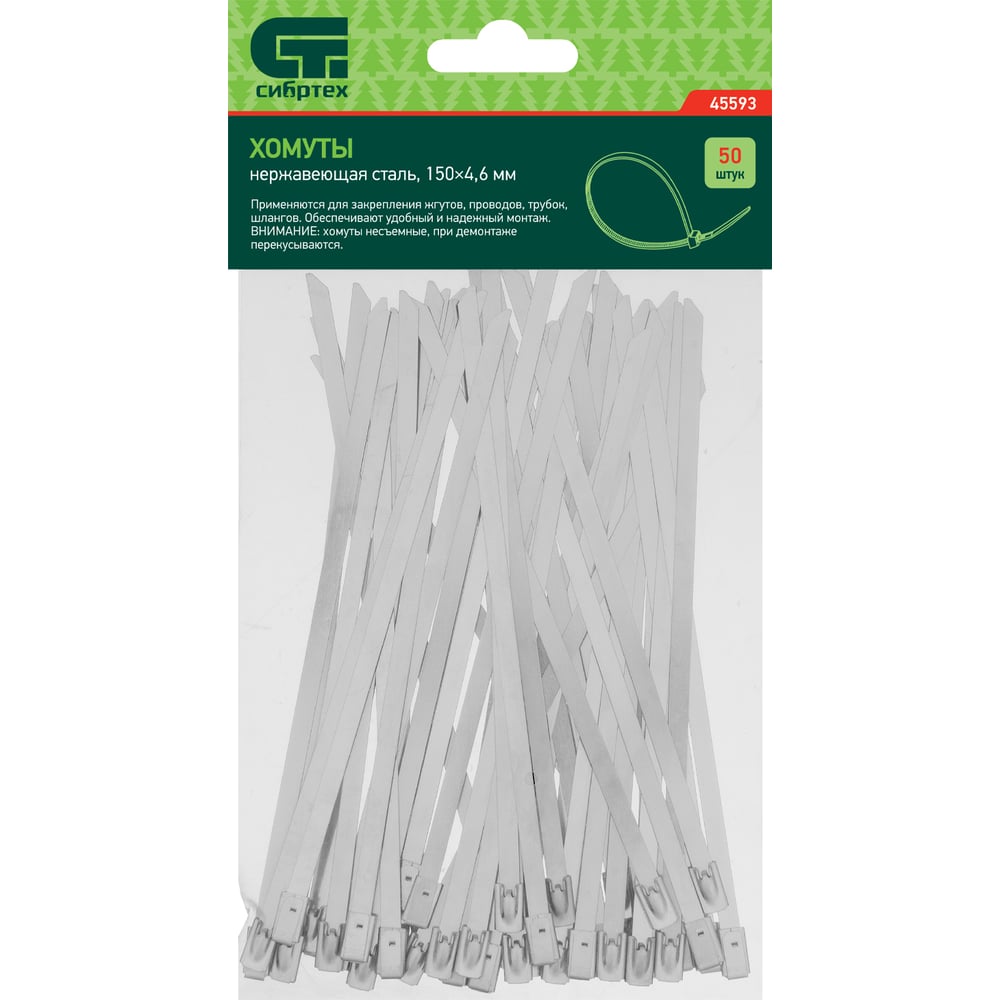 Хомуты СИБРТЕХ, 150 х 4,6 мм, нержавеющая сталь, 50 шт 45593