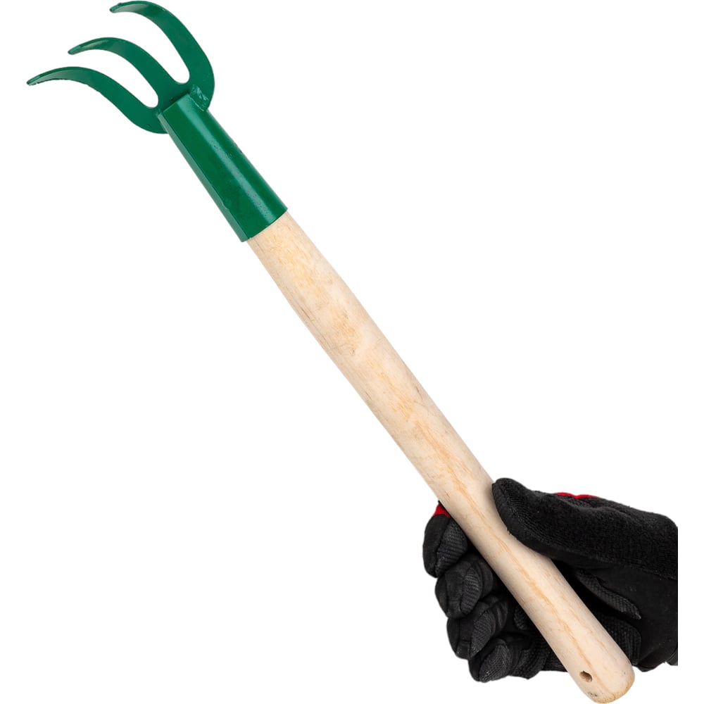 Трехзубый рыхлитель с деревянной ручкой 75x75x430 мм РОСТОК 39616