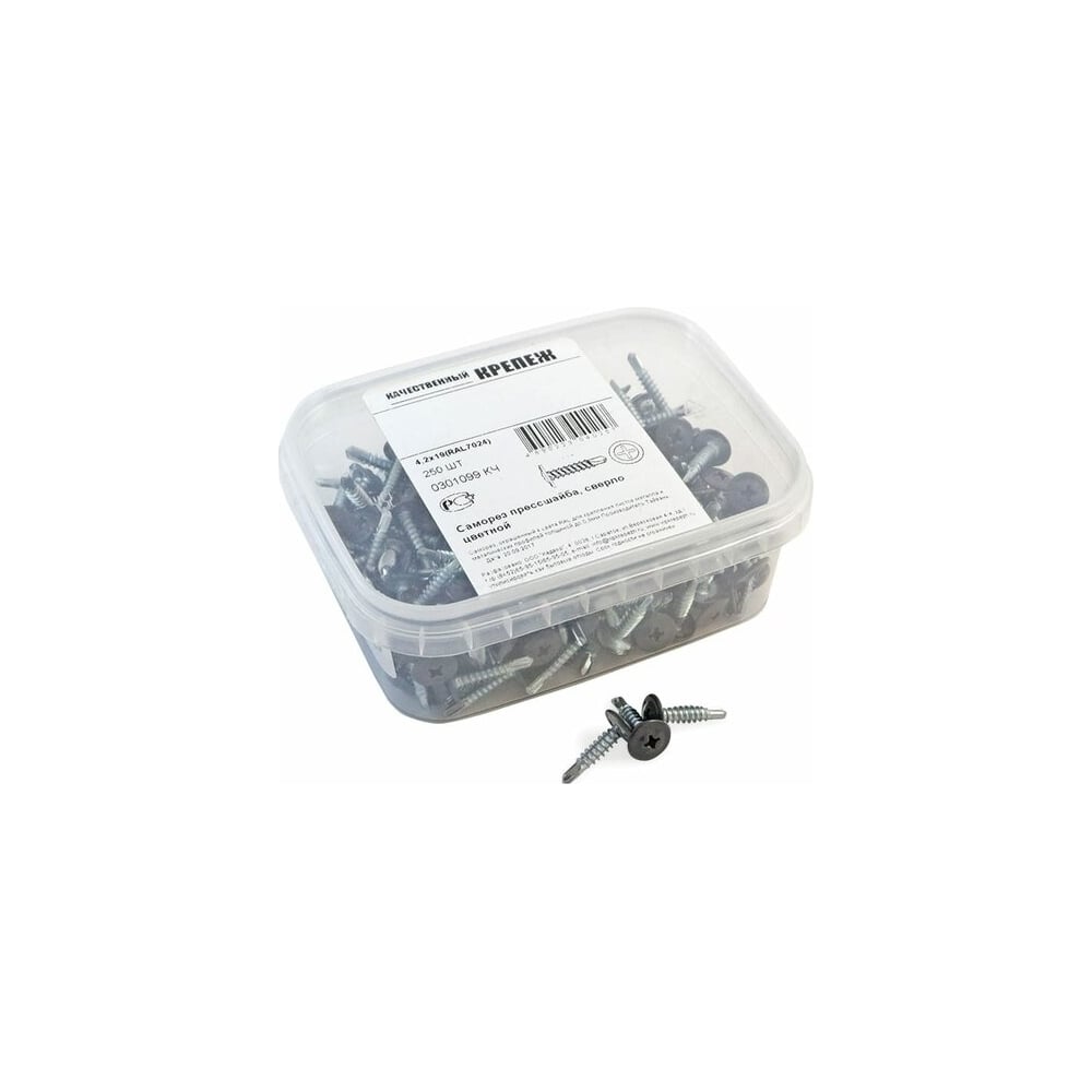 Острый саморез с прессшайбой качественный крепеж 4,2/19 RAL7024 серый графит (250 шт.) 0301097