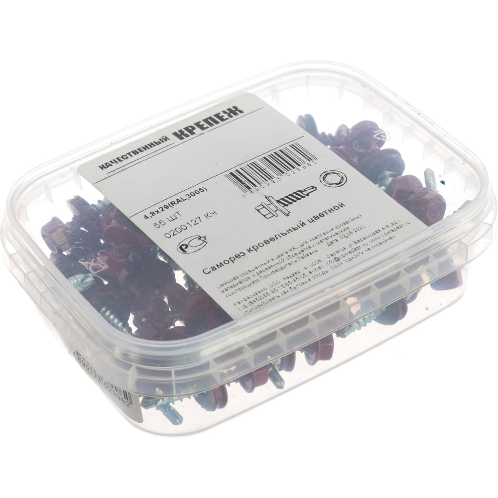 Кровельный саморез Качественный КРЕПЕЖ красное вино RAL 3005, 4.8х29 мм, 55 шт 0200127 КЧ