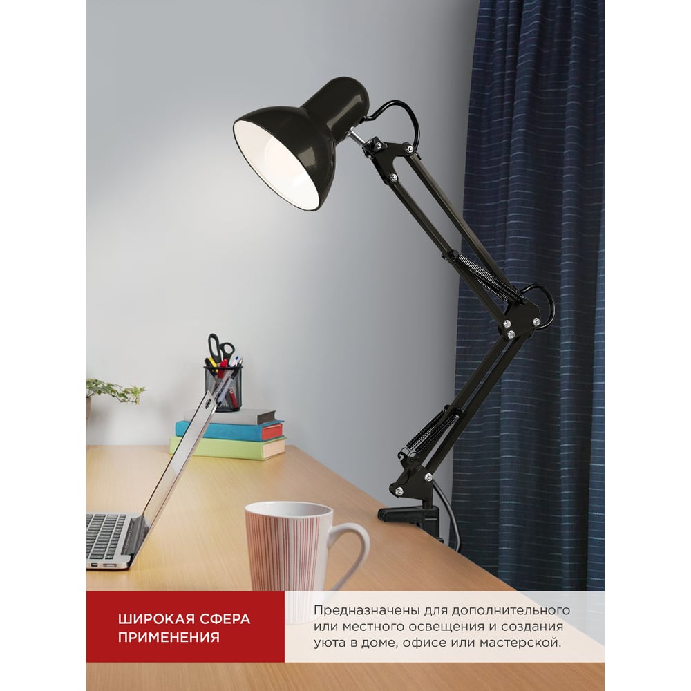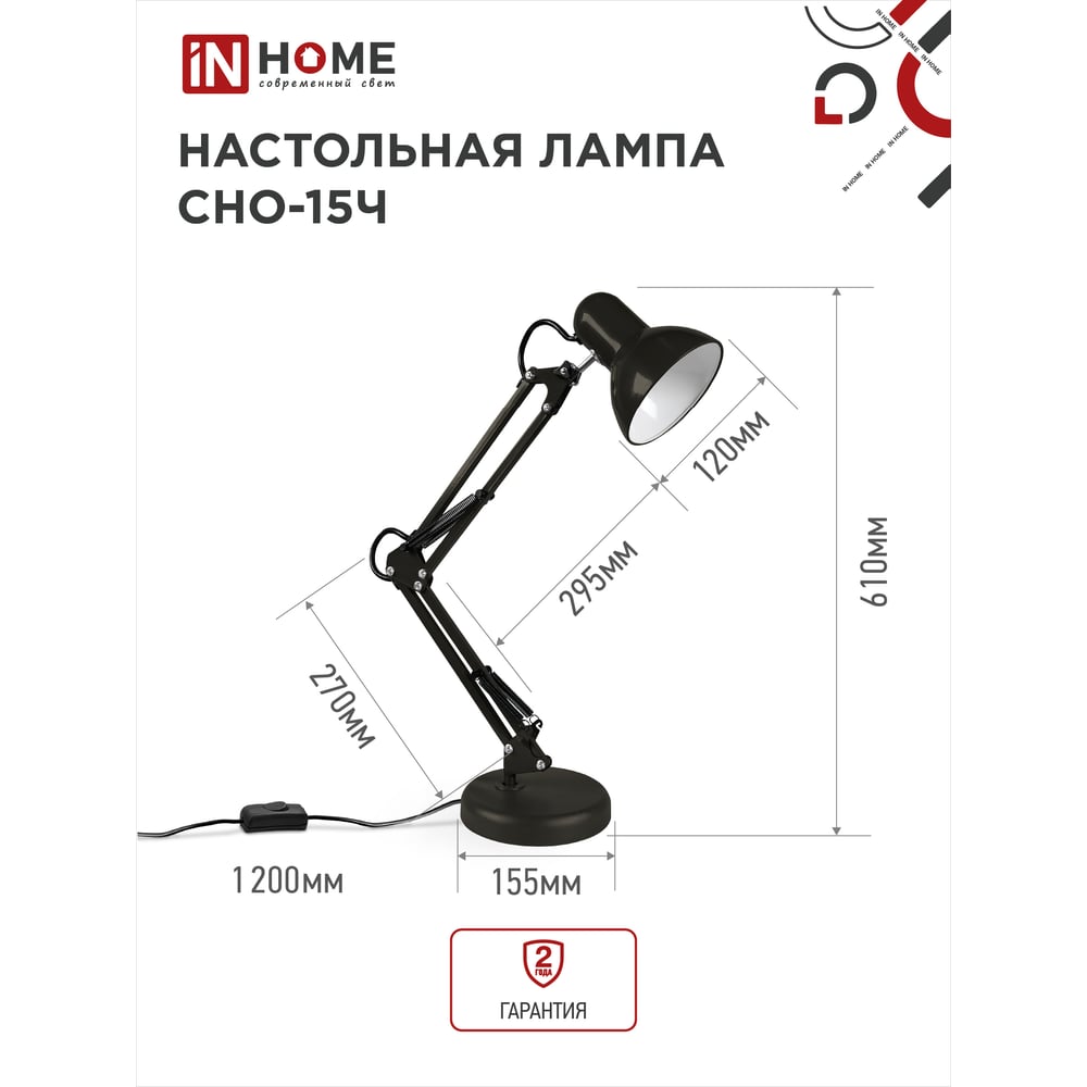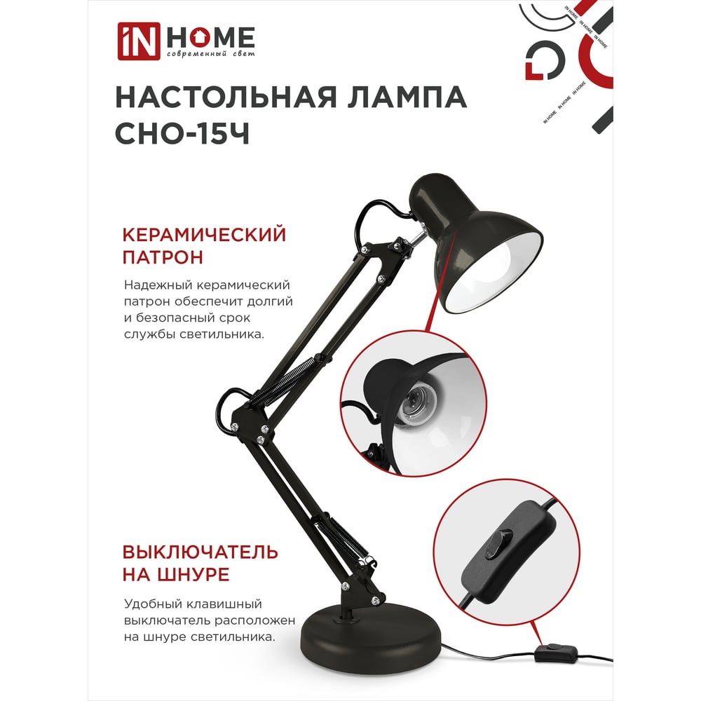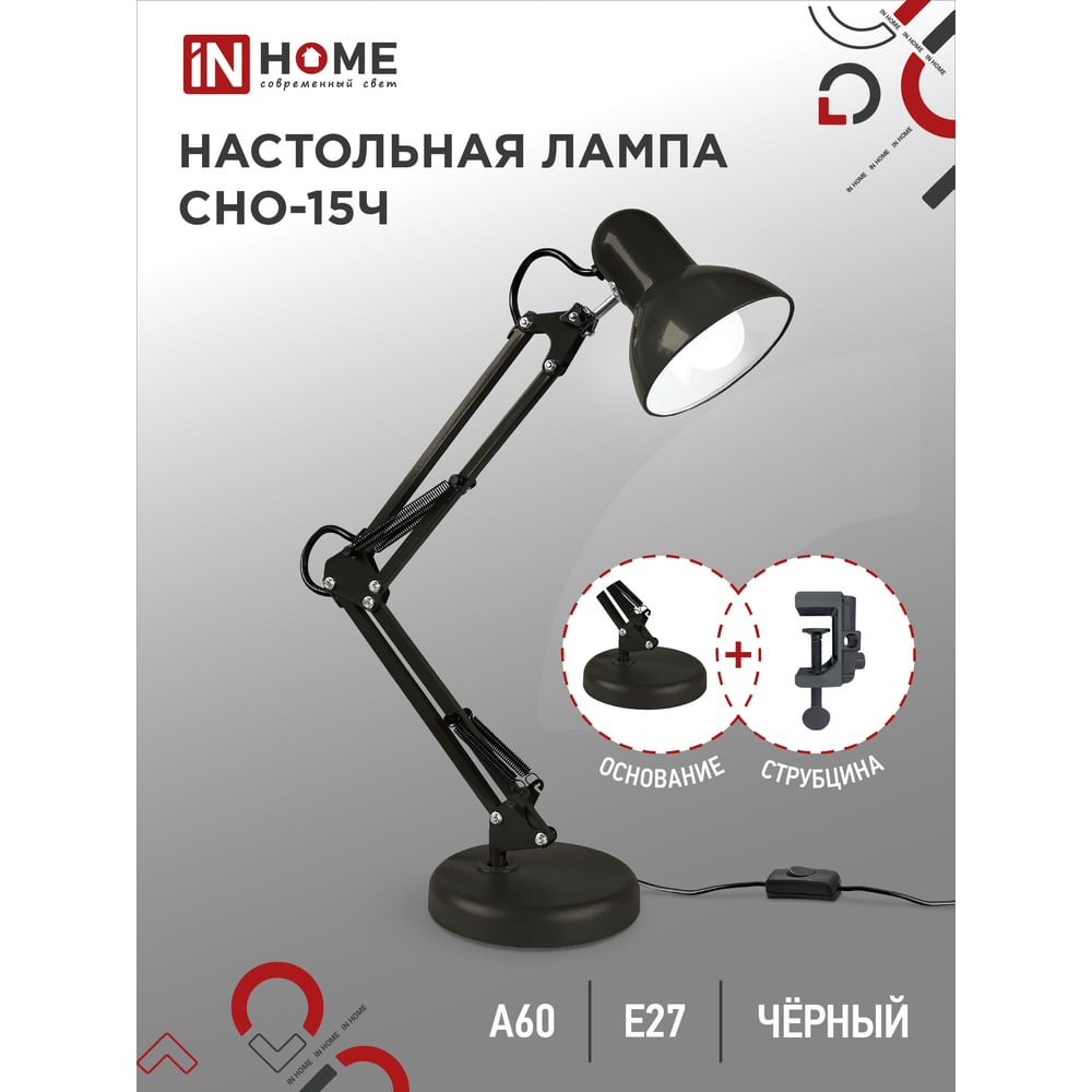 Настольный светильник под лампу IN HOME на основании + струбцина СНО-15Ч 60Вт E27 230В ЧЕРНЫЙ 4690612012902
