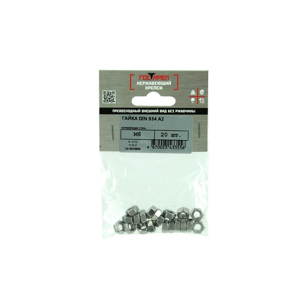Гайка ГОСКРЕП DIN 934 М6 нержав. сталь 20 шт. 10-0023690