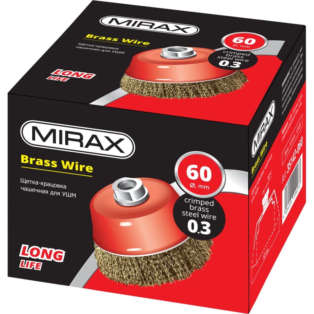 Щетка чашечная для УШМ (латунированная проволока 0,3 мм, 60 мм) MIRAX 35142-060