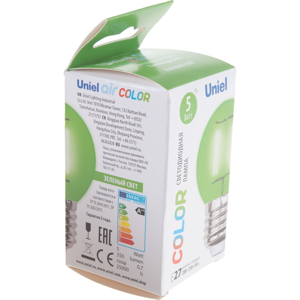 Светодиодная лампа Uniel LED-G45-5W/GREEN/E27 GLA02GR UL-00002988