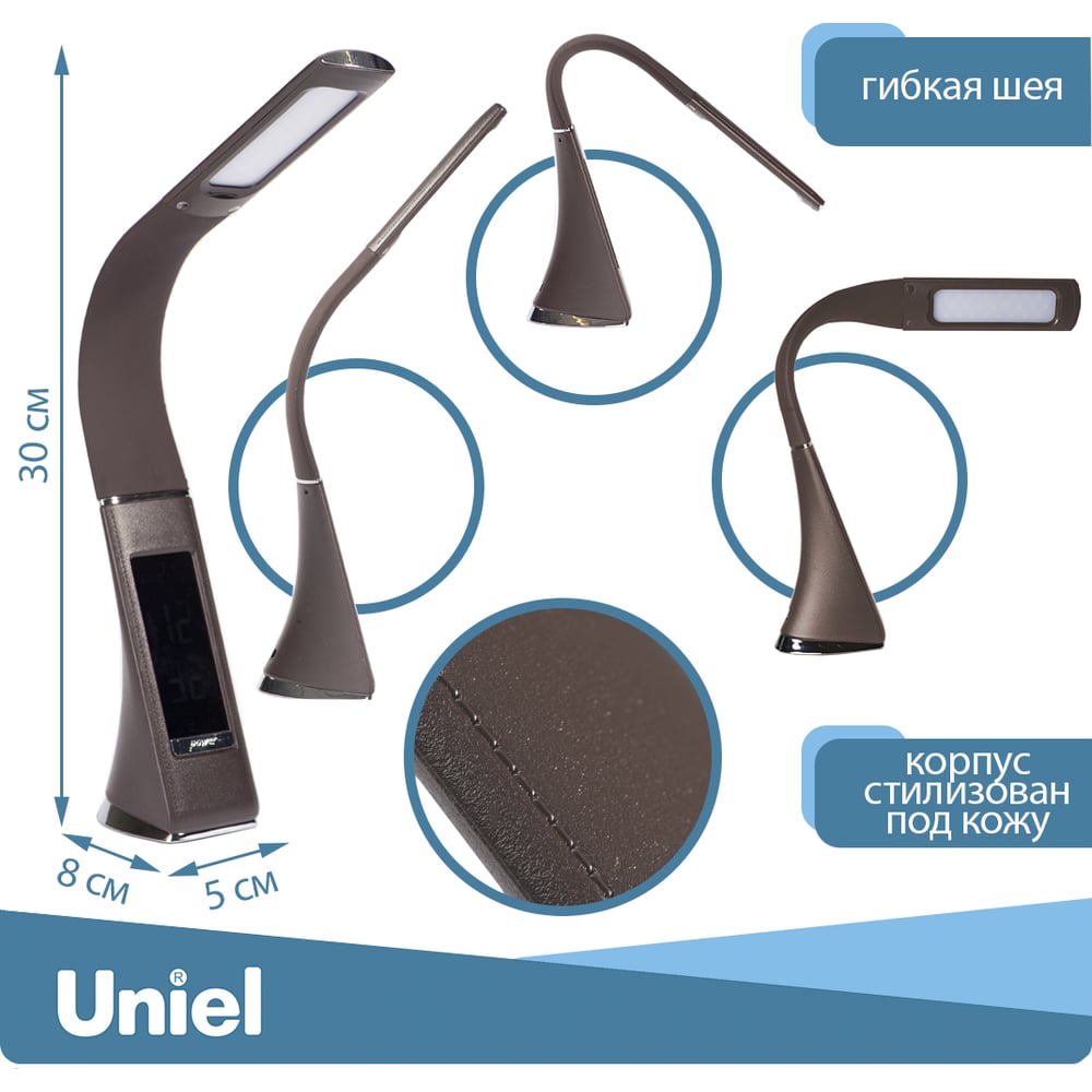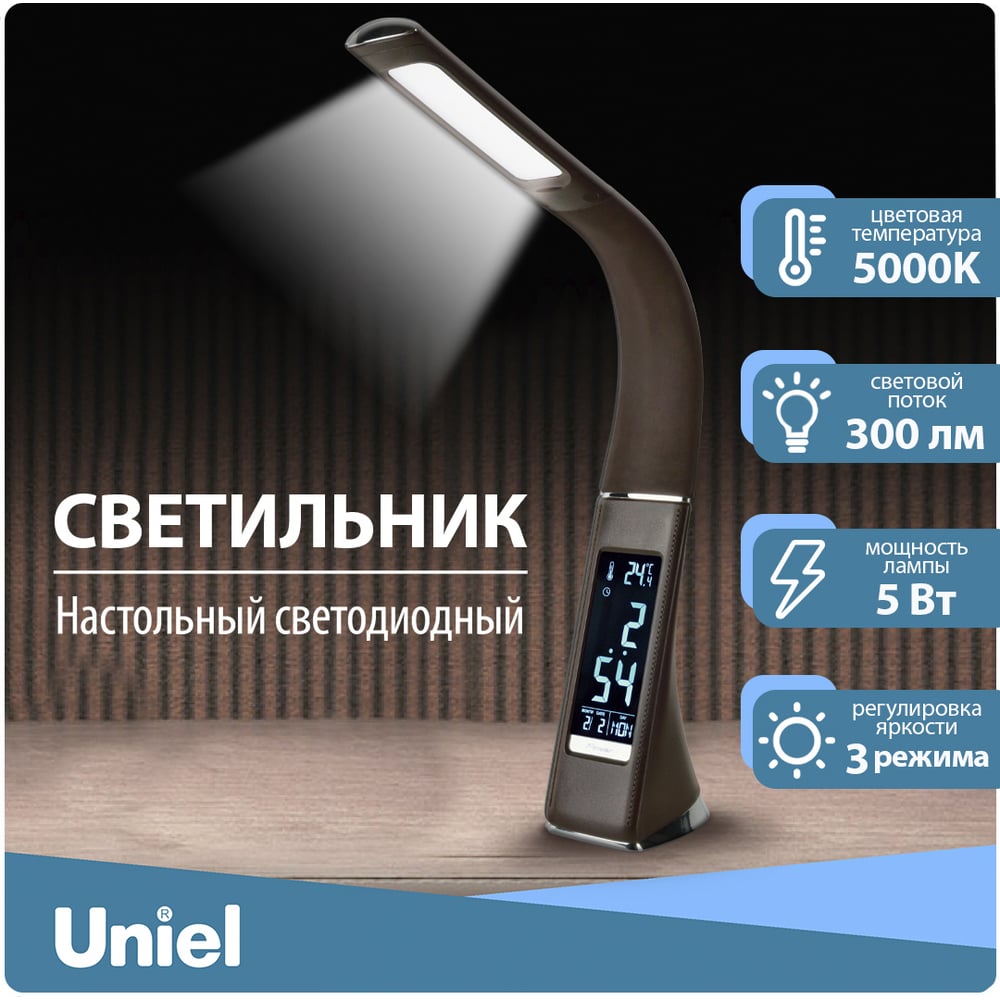 Настольный светильник с часами Uniel 5W TLD-542 Brown/LED/300Lm/5000K/Dimmer UL-00001817