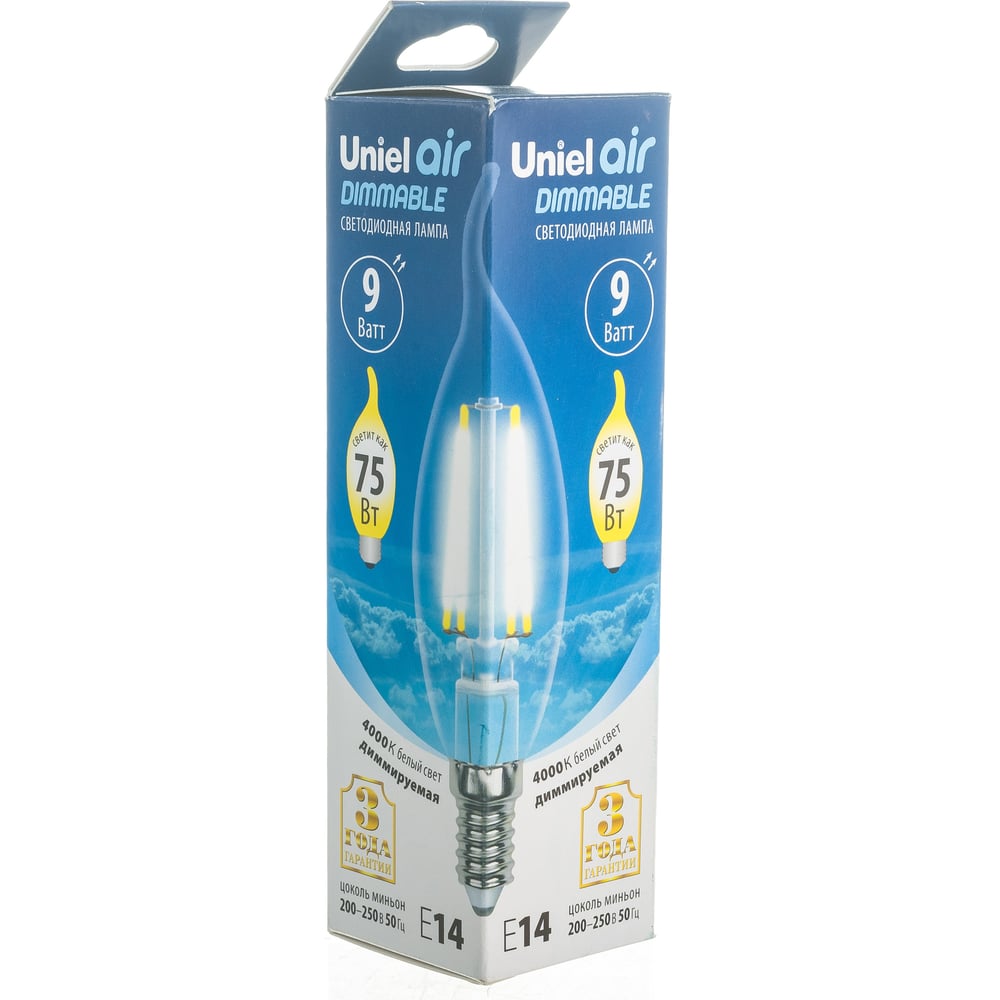 Диммируемая светодиодная лампа Uniel свеча на ветру Серия Air LED-CW35-9W/4000K/E14/CL/DIM UL-00005190
