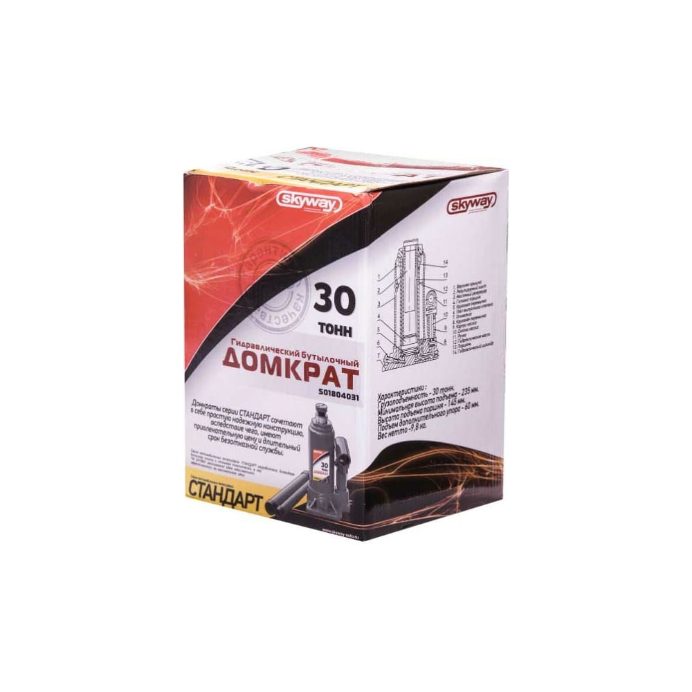 Гидравлический бутылочный домкрат SKYWAY 30т h 235-445 мм STANDART S01804031