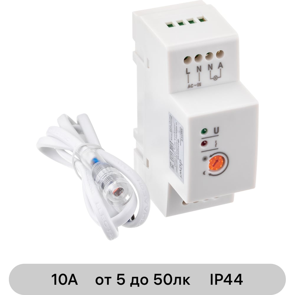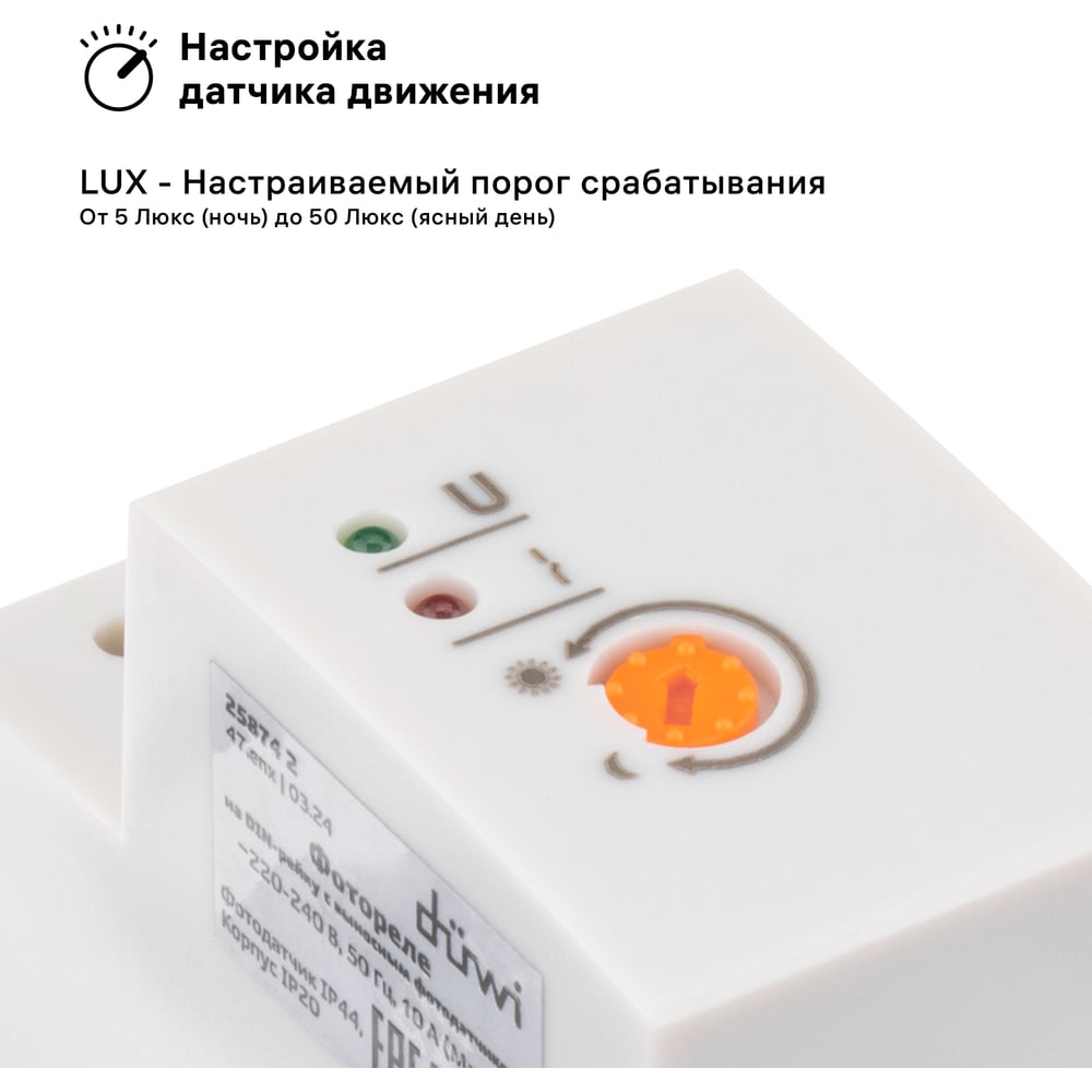 Фотореле duwi FR-05, датчик освещения, на DIN-рейку, 10А, 5-50Лк, с выносным фотодатчиком, IP44, белый 25874 2