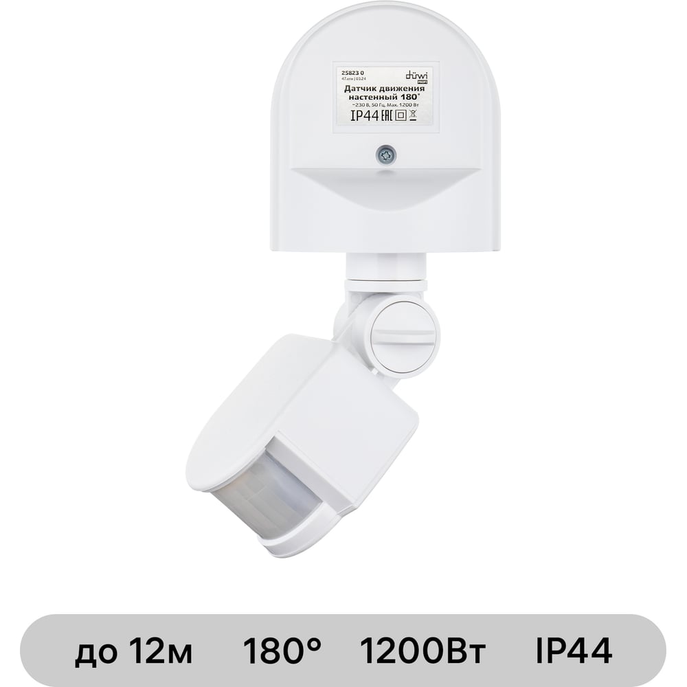 Настенный датчик движения duwi DD-01 180 800Вт 10-420с 5-12м 3-2000Лк IP44 белый 25823 0
