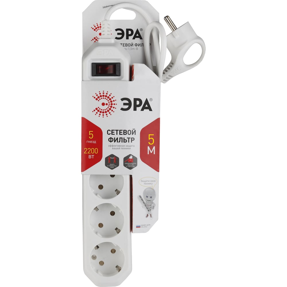 Сетевой фильтр ЭРА USF-5es-5m-W белый с заземлением 3x0,75мм2, с выкл, 5гн, 5м Б0019738