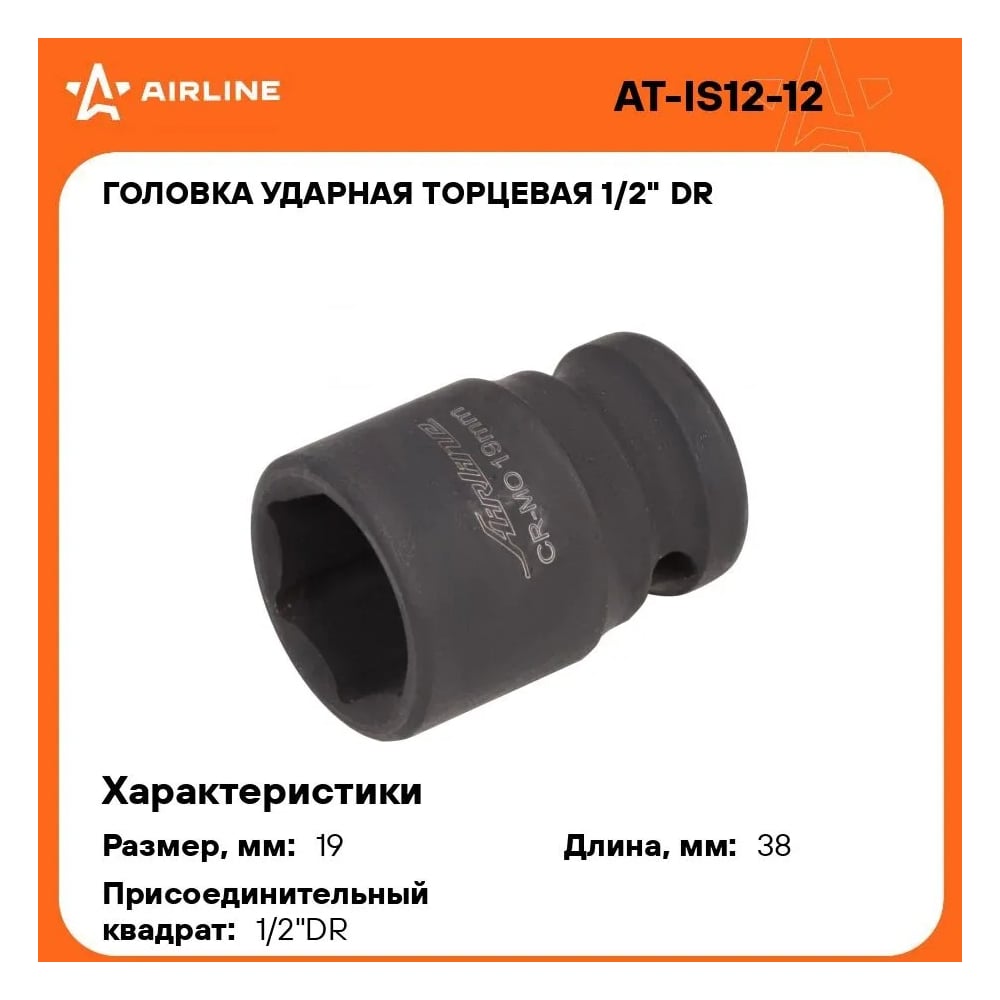 Головка ударная торцевая шестигранная (19 мм; 1/2" DR) Airline AT-IS12-12