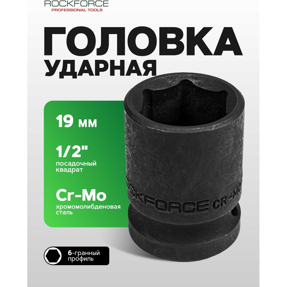 Головка торцевая 6-гранная ударная 19 мм, 1/2", L=40 мм ROCKFORCE RF-44519(265)