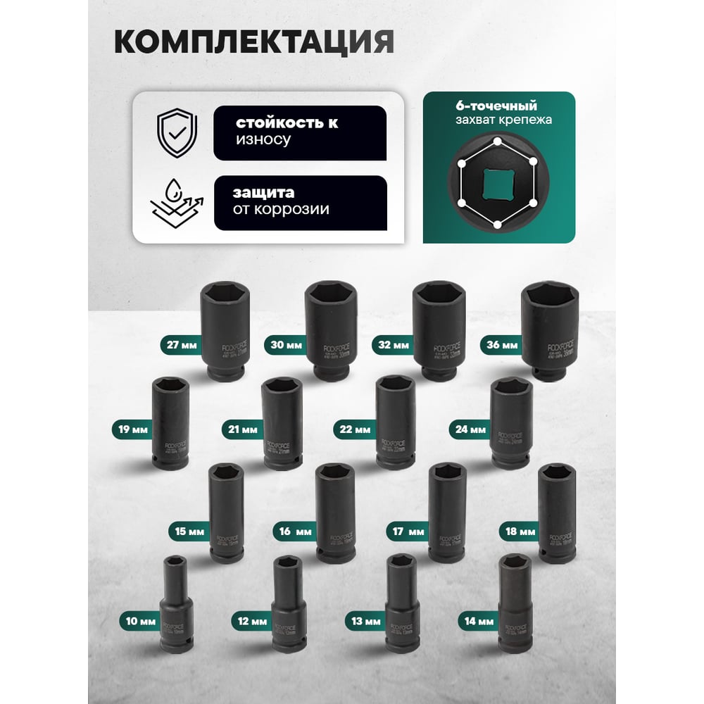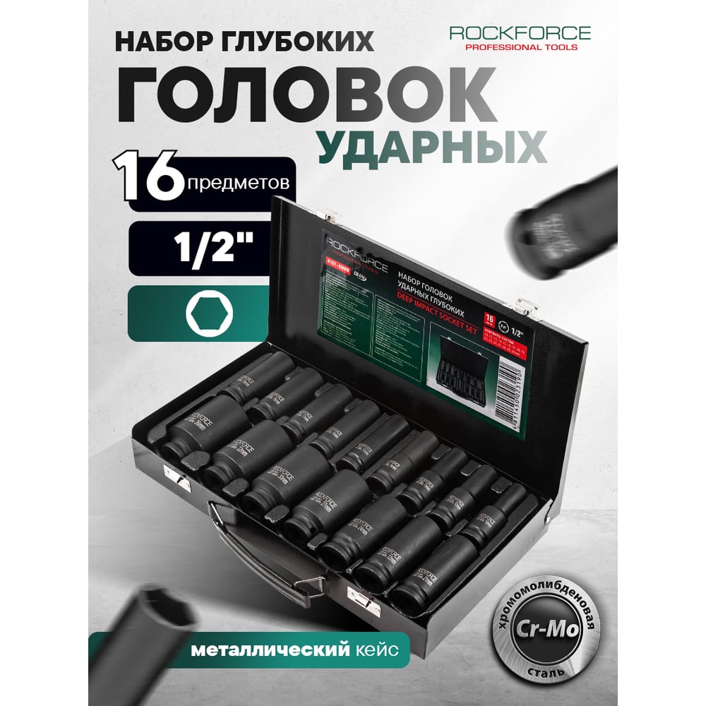 Набор головок ударных глубоких, 16 предметов Rockforce RF-4167-5MPB(28576)