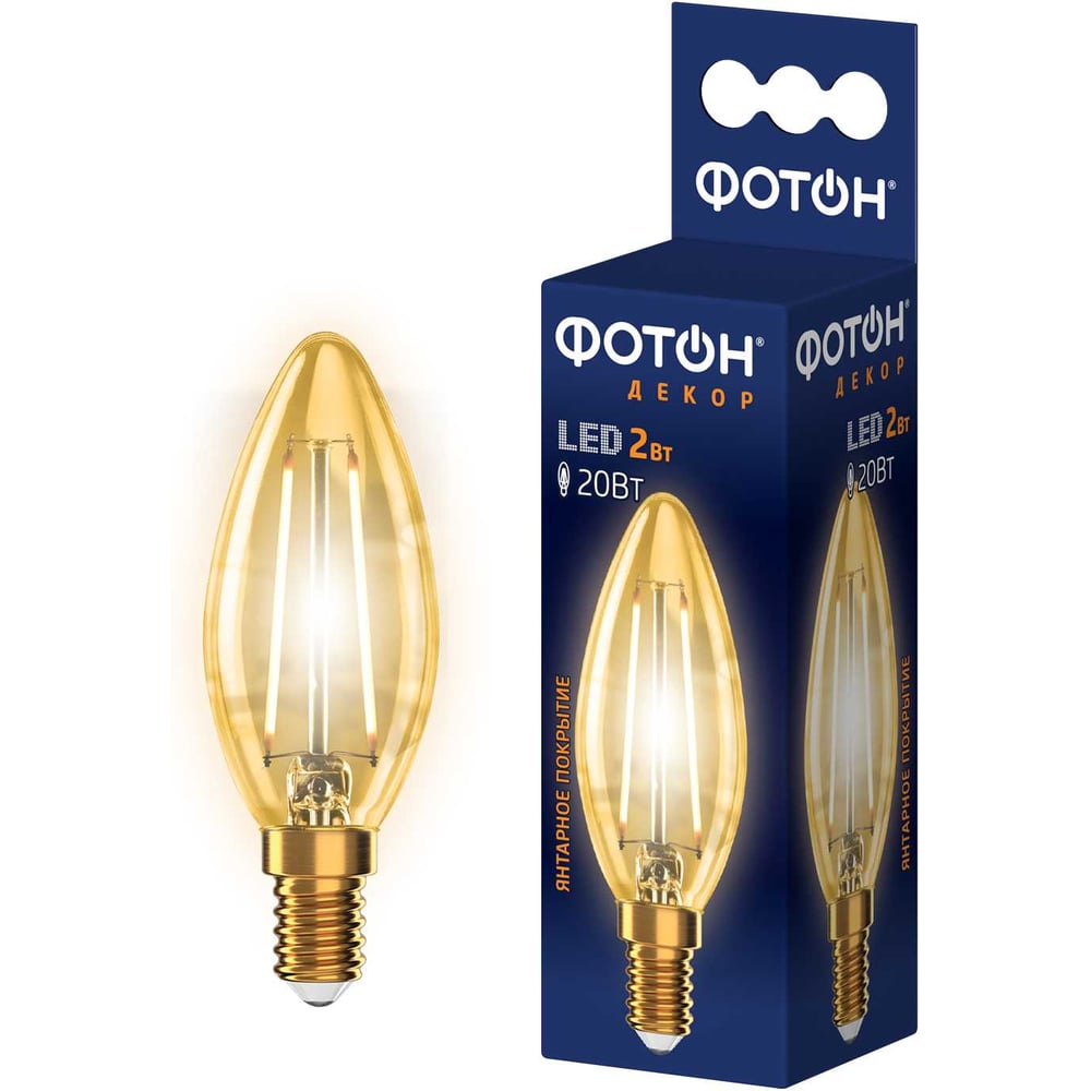 Светодиодная лампа ФОТОН филаментная LED FL B35 2Вт E14 2200K, теплый свет 22625