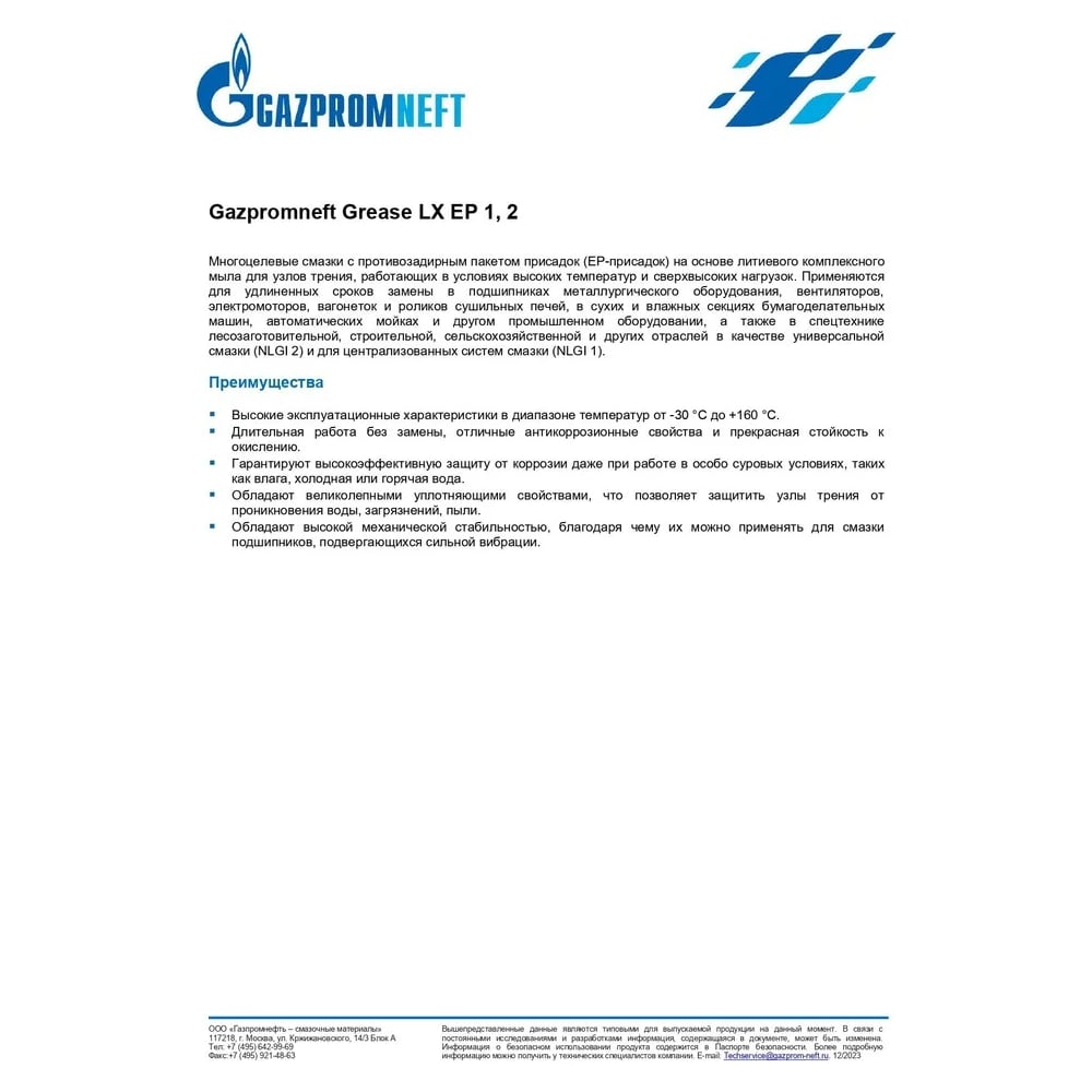 Многоцелевая смазка GAZPROMNEFT Grease LX EP 2 2389906762
