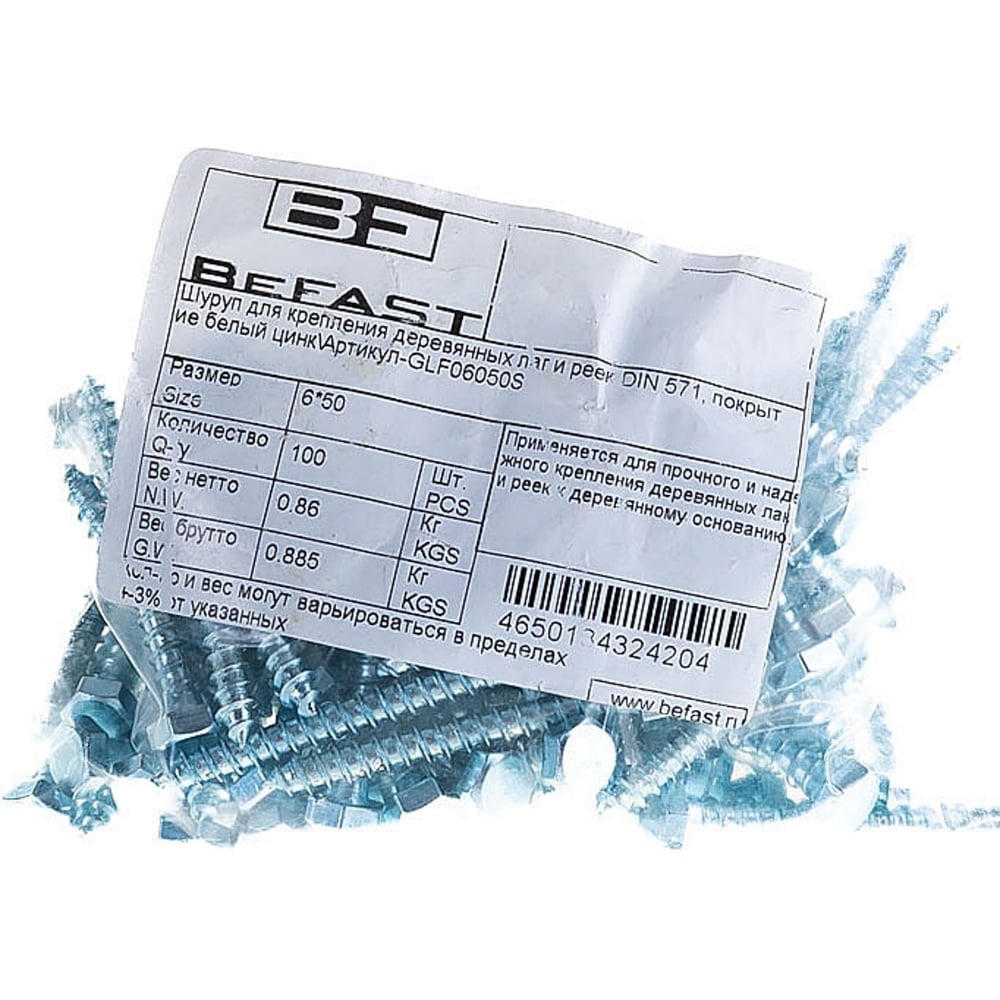 Шуруп для лаг и реек с шестигранной головкой BEFAST DIN571 6х50 100 шт GLF06050100S