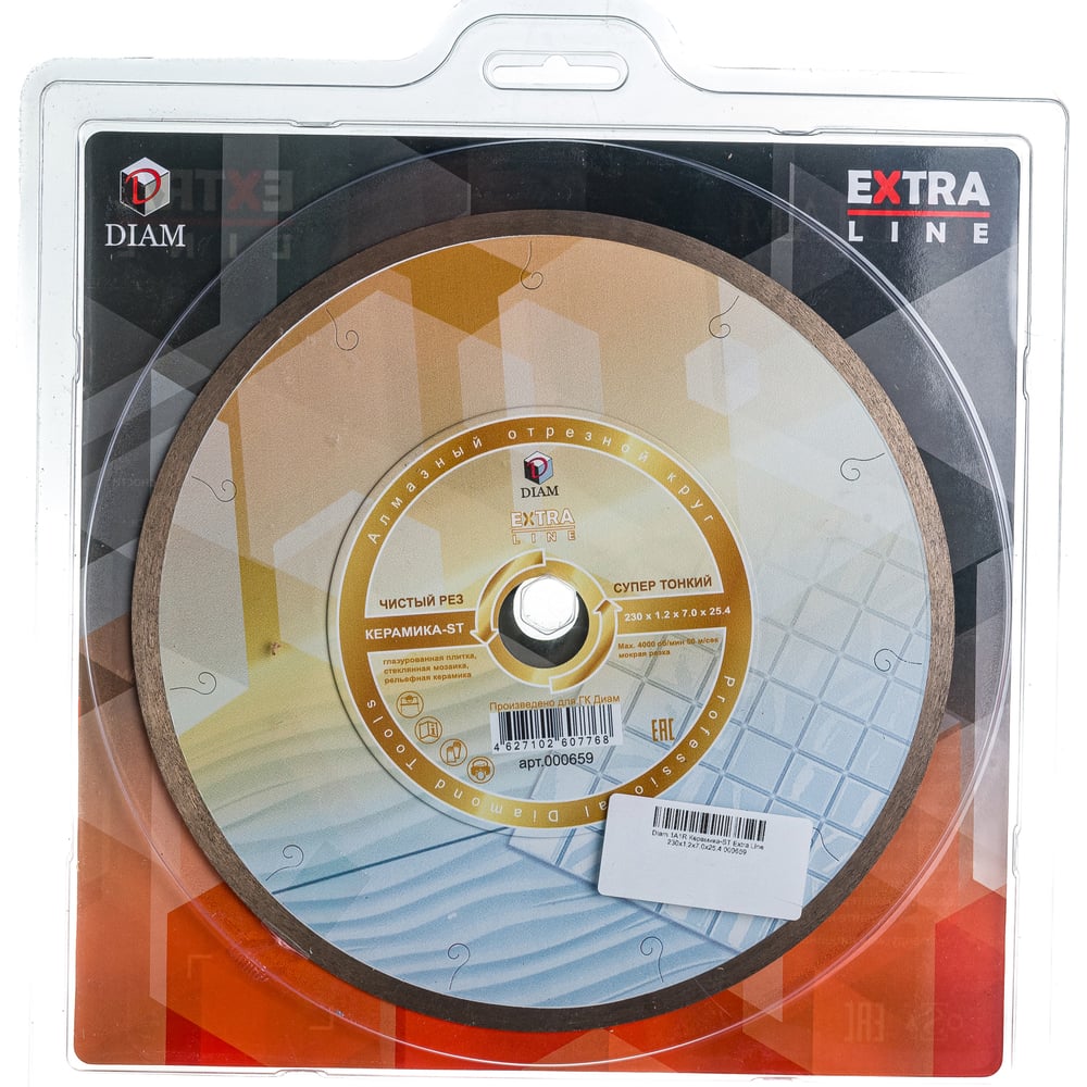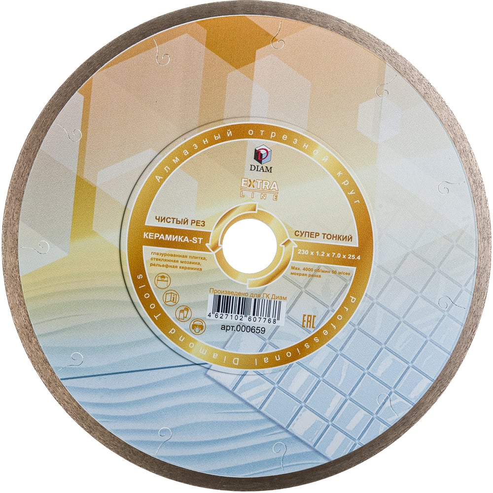 Диск алмазный отрезной сплошной Diam 230x1,2x7,0x25,4 Керамика-"ST" Супер Тонкий, серия Экстра (Керамика,Глазурованная плитка, Стеклянная мозаика) 000659