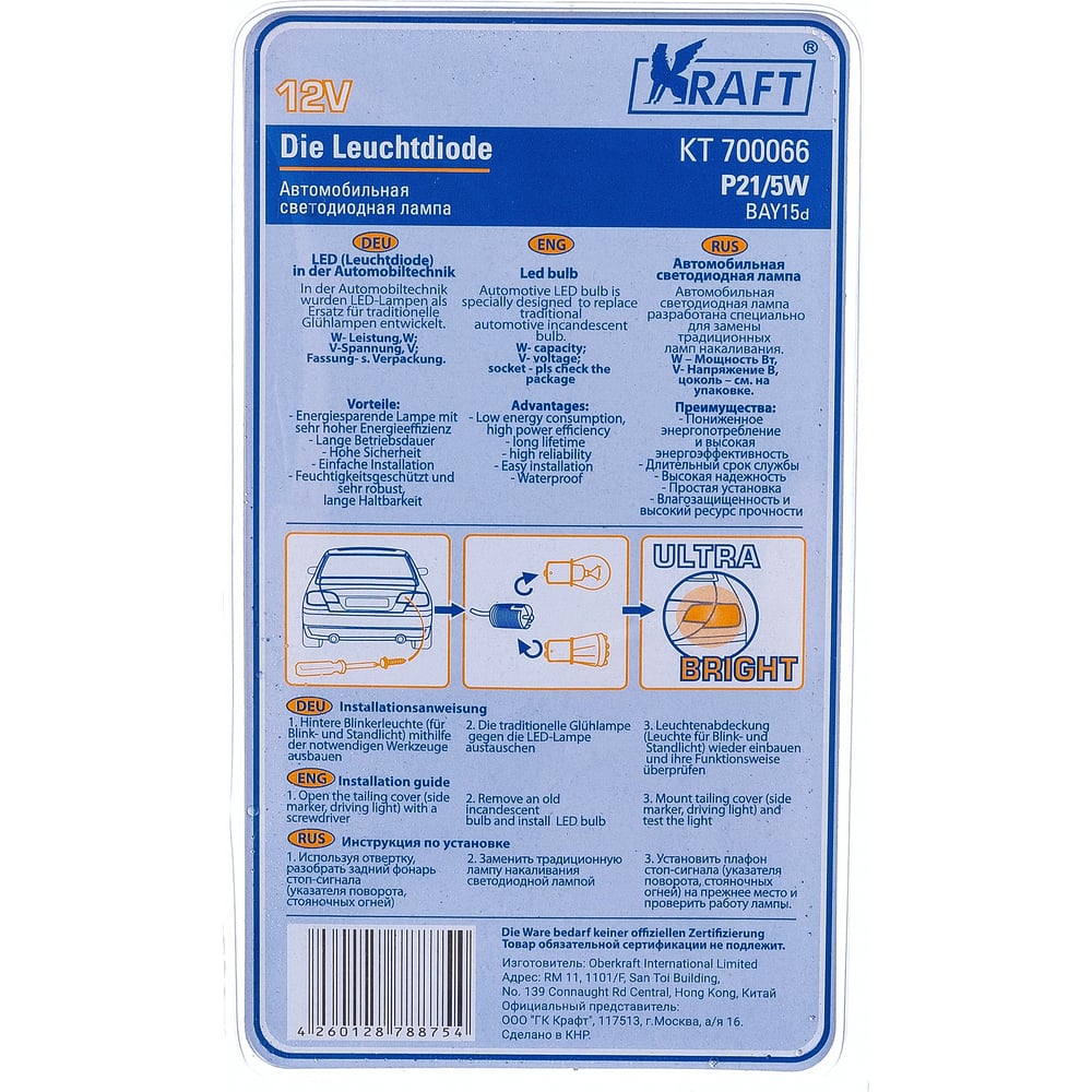 Светодиодная лампа KRAFT P21/5W BAY15d 12/24v White 12 LEDs KT 700066