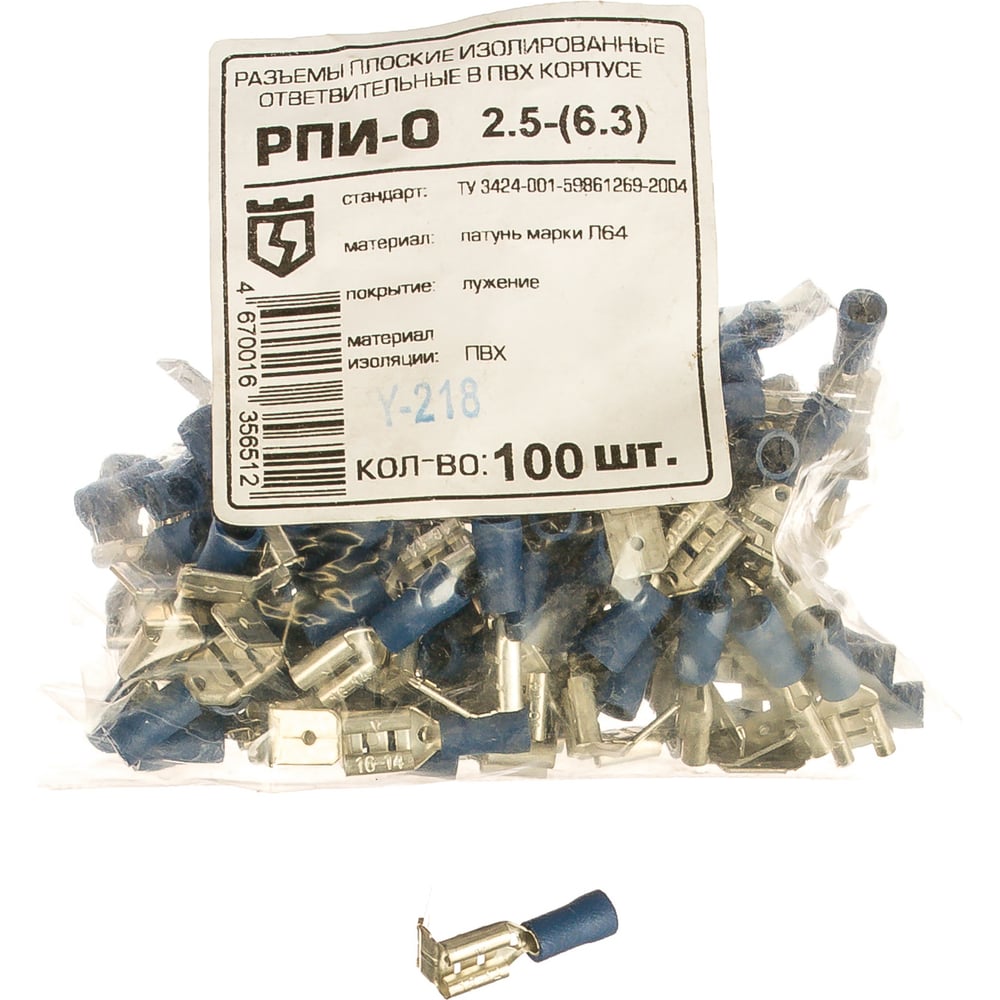 Плоский ответвительный разъем КВТ РПИ-О 2,5-6,3 100 шт./уп.48867