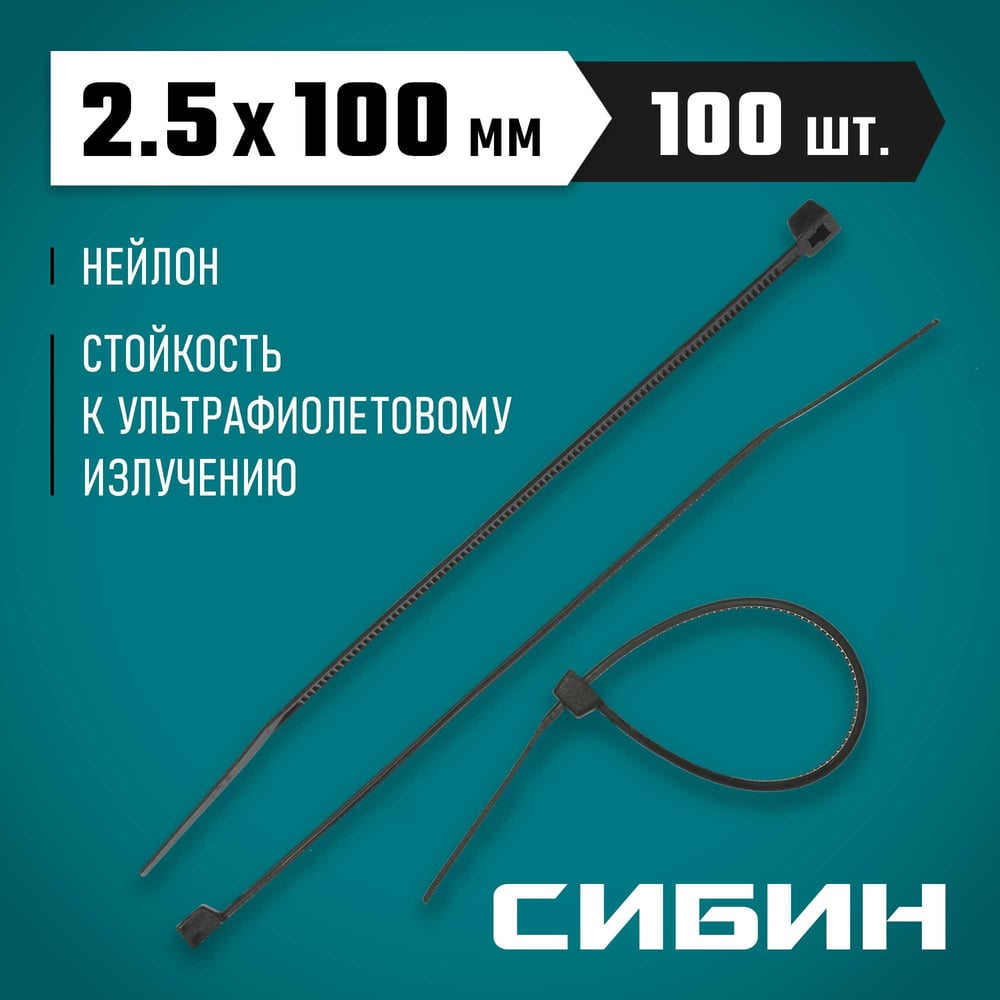 Хомуты-стяжки СИБИН ХС-Ч черные, 2.5х100 мм, 100 шт, нейлоновые, 3788-25-100