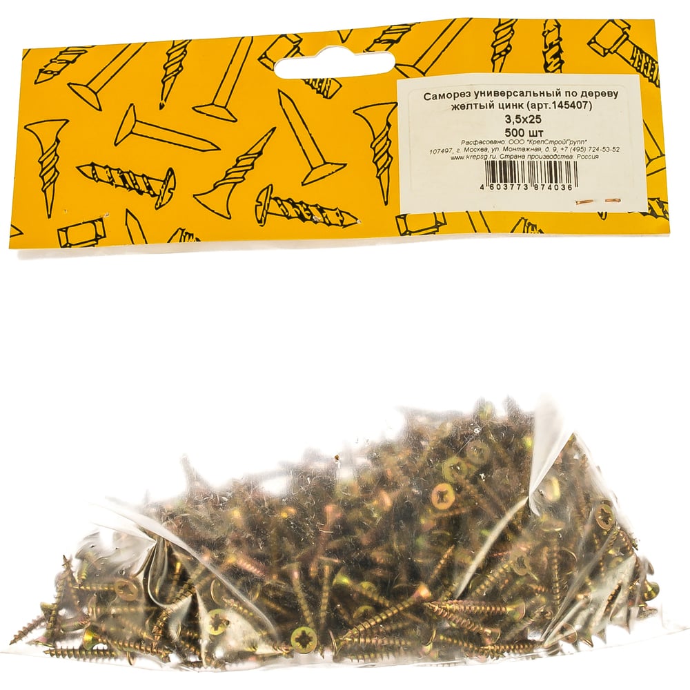 Универсальный саморез по дереву КрепСтройГрупп 3,5х25 желтый цинк, 500 шт. 145407
