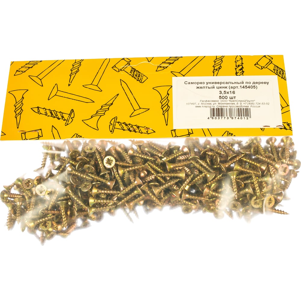 Универсальный саморез по дереву КрепСтройГрупп 3,5х16 желтый цинк, 500 шт. 145405