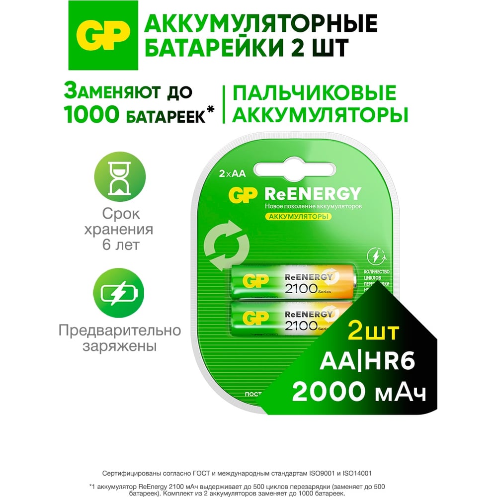 Перезаряжаемые аккумуляторы GP 210AAHC AA, емкость 2100 мАч - 2 шт. 210AAHC-2DECRC2 210AAHC-2DECRC2 16105523