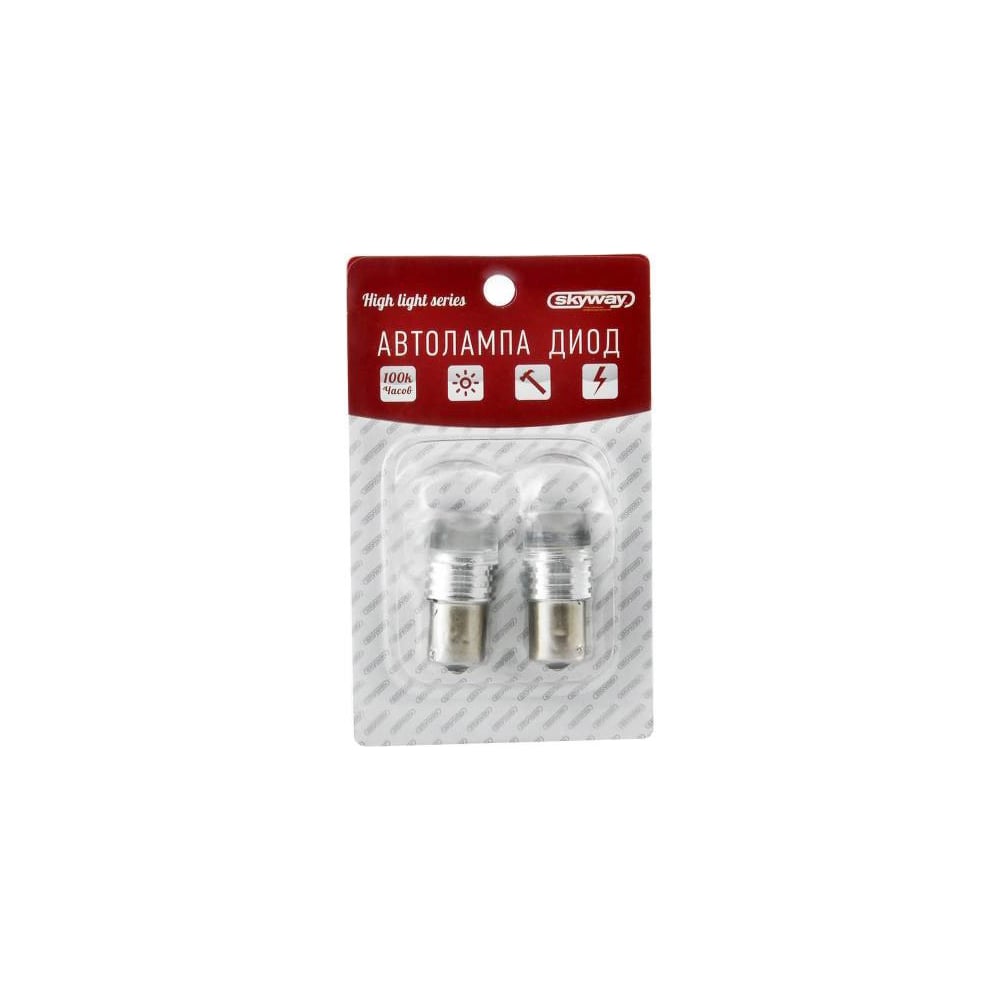 Автолампа диод SKYWAY S25, 12V, 1 диод, блистер с цоколем, 1-контактная, синяя, габариты, стопы, поворот, S08201035