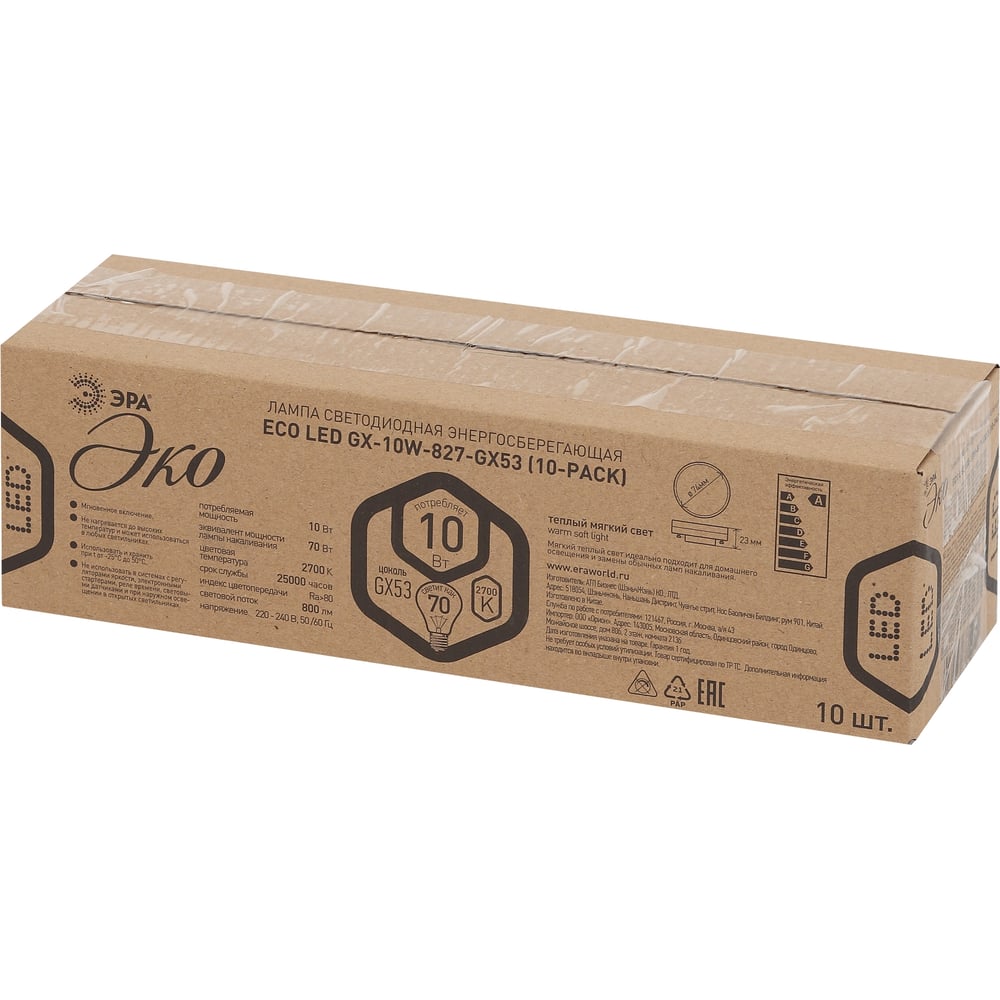 Светодиодная лампа ЭРА ECO LED GX 10W 827 GX53 диод, таблетка, 10Вт, теплый, GX53 10 шт Б0036549