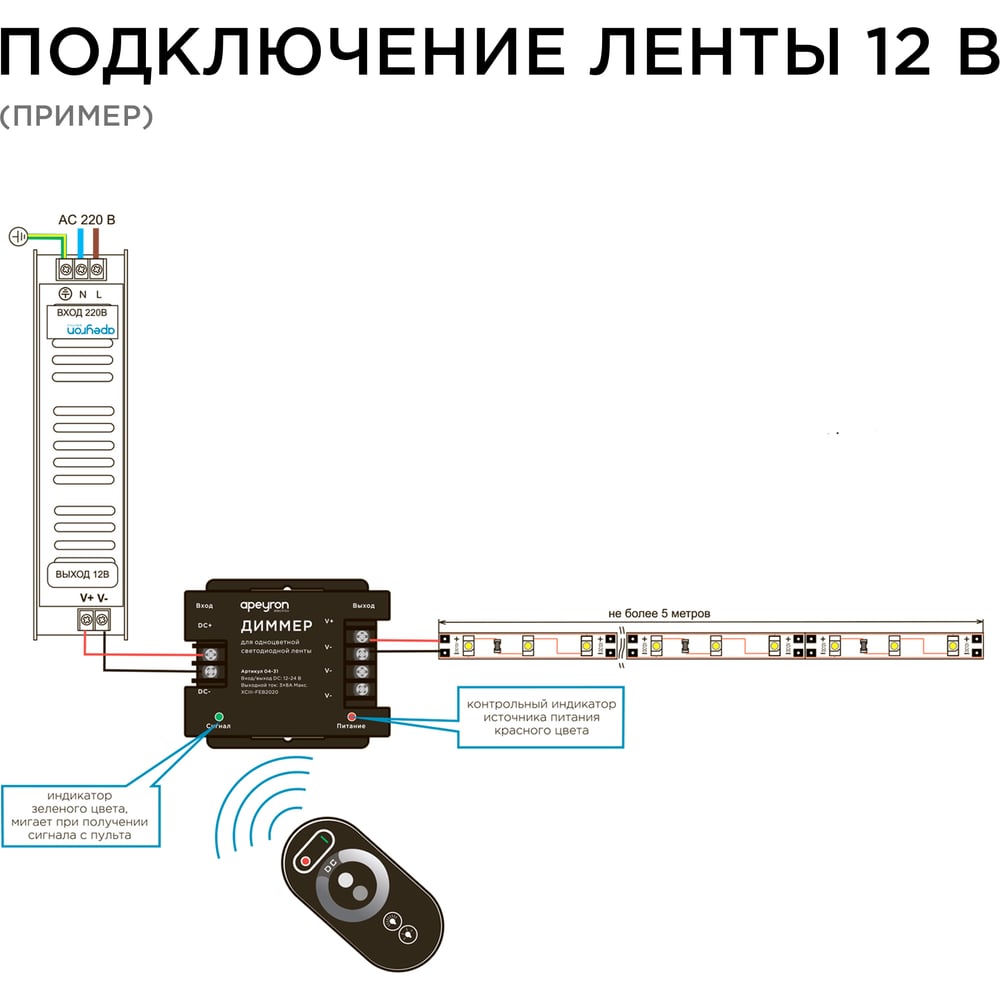 Светодиодная лента в блистере APEYRON 12В, 14.4Вт/м smd 5050 16BL