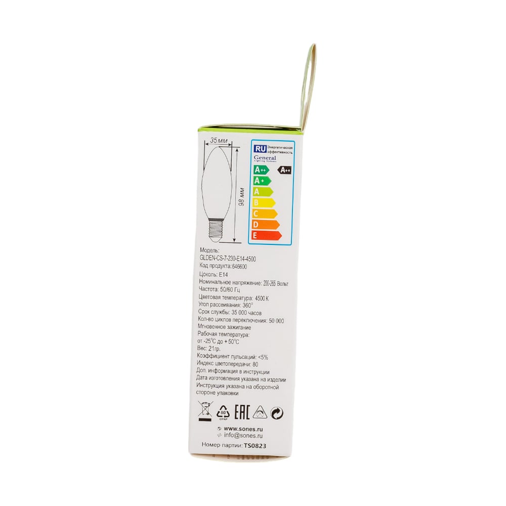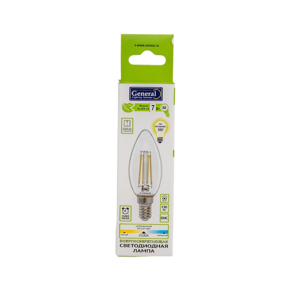 Светодиодная лампа General Lighting Systems Филамент прозрачный E14 7Вт 230В 510Лм 4500К Нейтральный белый свет Свеча GLDEN-CS-7-230-E14-4500 646600