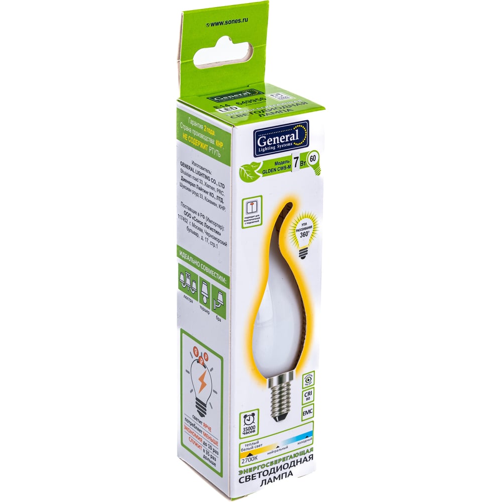 Светодиодная лампа General Lighting Systems Филамент матовый E14 7Вт 430Лм 2700К Теплый белый свет Свеча на ветру GLDEN-CWS-M-7-230-E14-2700 649956