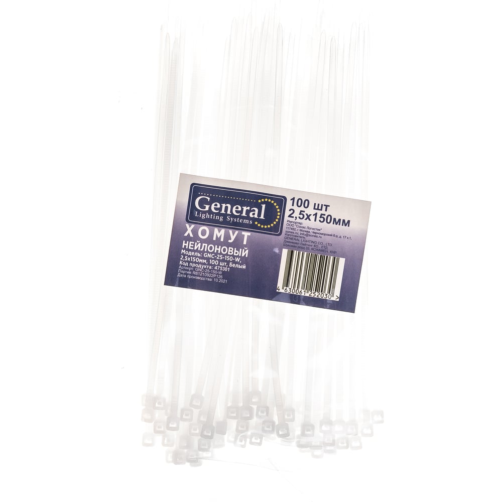 Нейлоновый хомут General Lighting Systems GNC-25-150-W, 2,5x150 мм, 100 шт. белый 1 400 475301