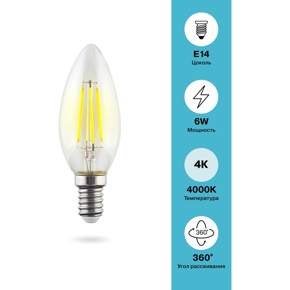 Светодиодная лампа VOLTEGA Свеча Е14 4000К 6W 7020