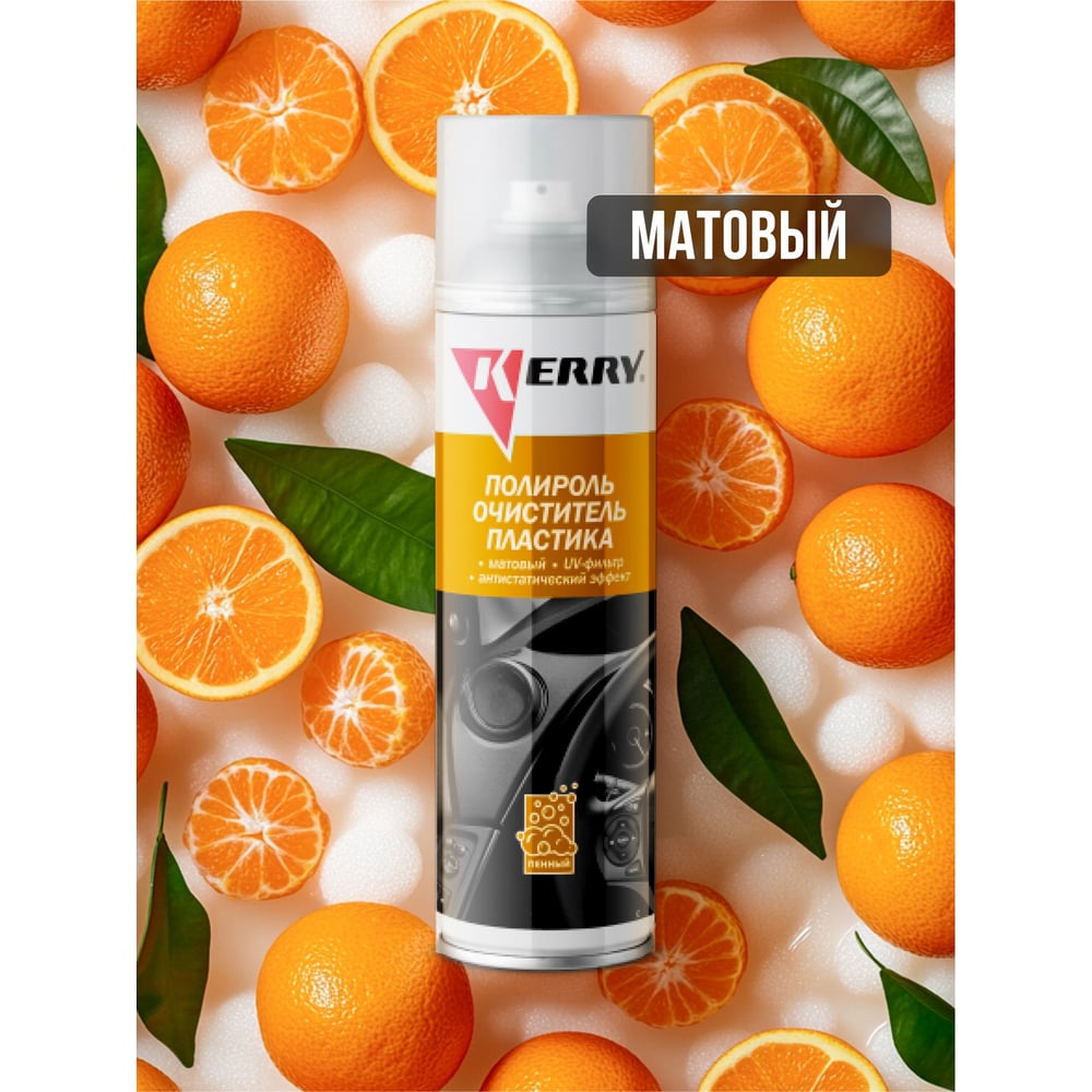 Пенный полироль-очиститель для пластика салона KERRY с матовым эффектом, апельсин, 335 мл 11604736